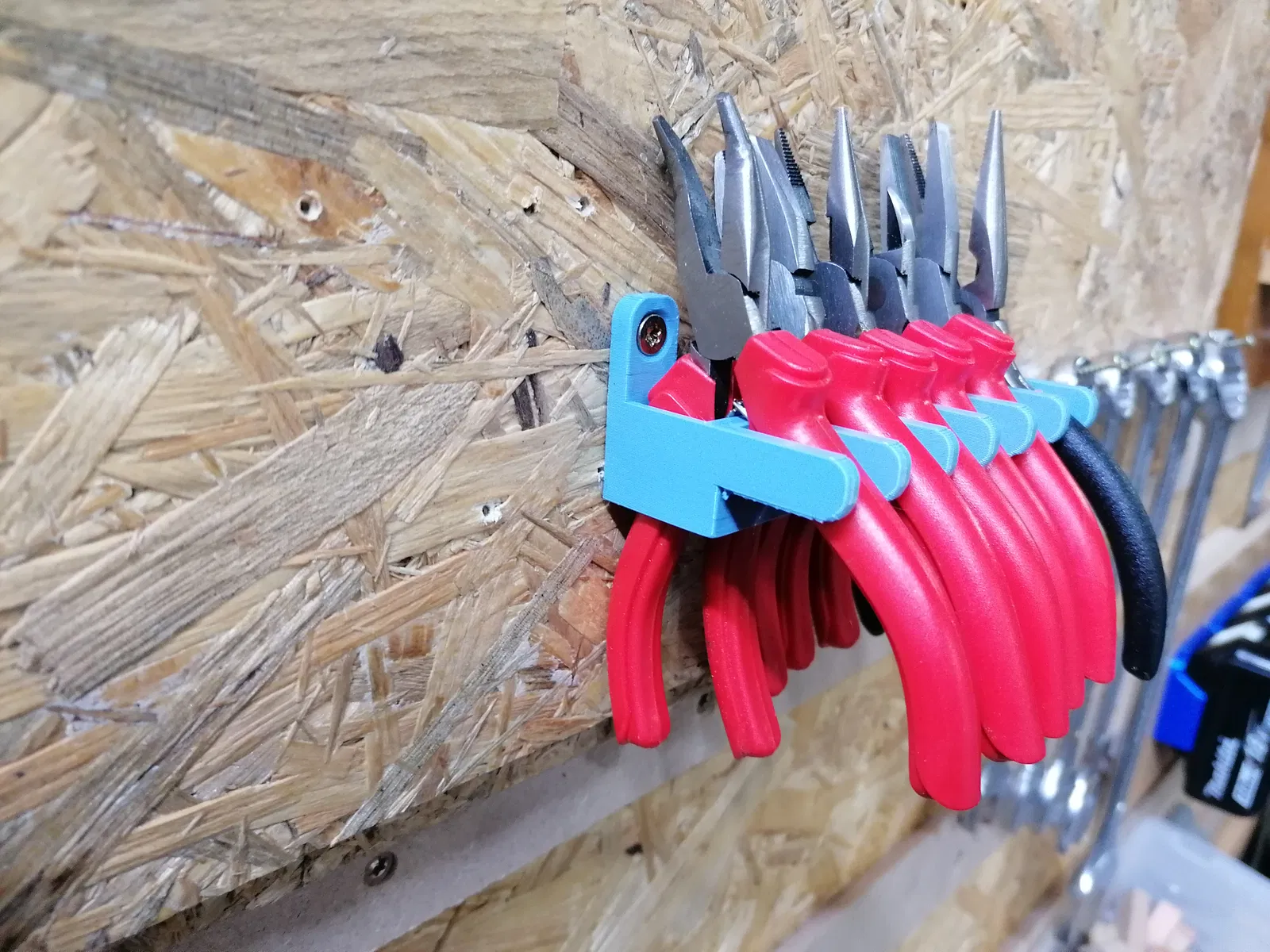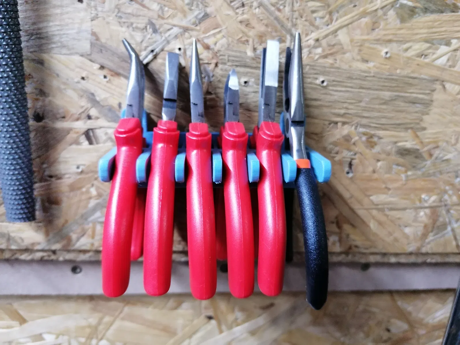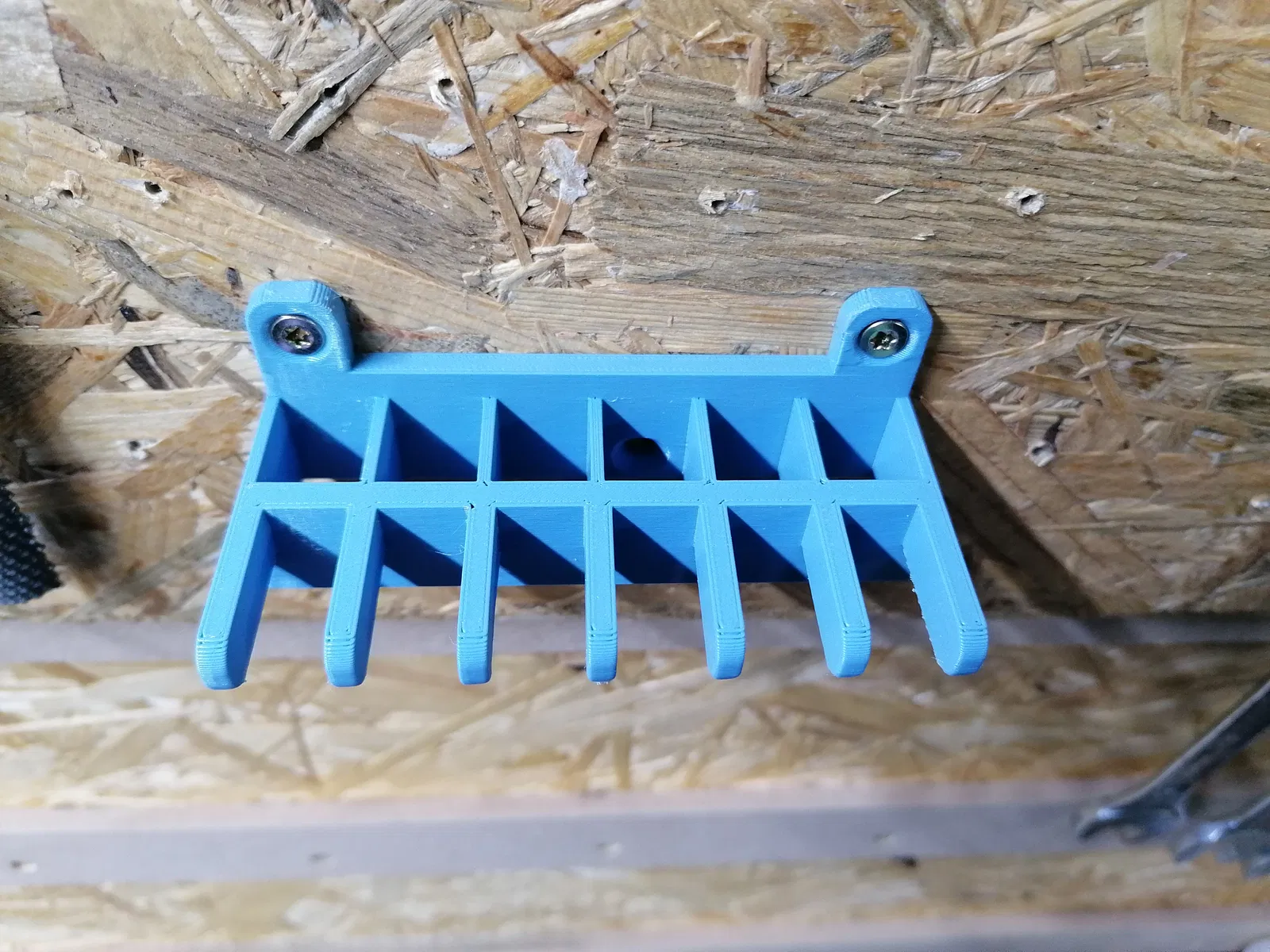 Khuôn kẹp mini (cụ thể là kẹp trong khuôn này: https://www.obi.cz/kleste/sada-mini-klesti-5dilna/p/3676624). Chiều rộng khuôn là 104 mm, chiều cao 25 mm (không tính phần gắn thêm để treo). In bằng PLA PETG với hỗ trợ, lớp dày 0,3 mm.