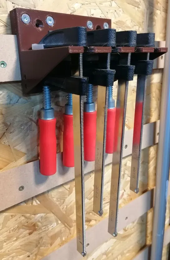 Giá đỡ kẹp đơn giản cho hệ thống French Cleat. In bằng PETG với lớp dày 0,3 mm, kèm đường viền 5 mm để chống cong vênh. Tương thích với ốc M5 x 17 và đai ốc M5. Có kèm file gắn tường riêng và file nguồn FreeCAD để tùy chỉnh.