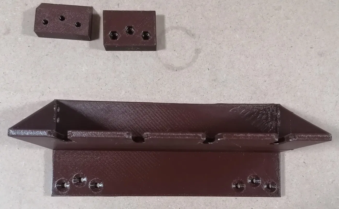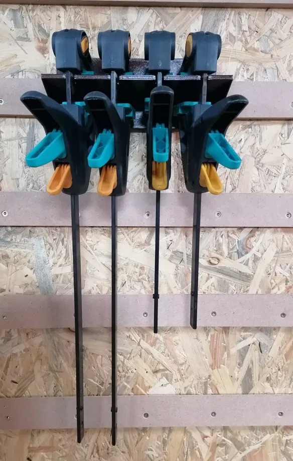 Giá đỡ kẹp đơn giản cho kẹp Wolfcraft, tương thích với hệ thống French Cleat. Kích thước cho vít M5 và đai ốc M5, in bằng PETG với lớp 0,3mm. Tệp nguồn FreeCAD được cung cấp để tùy chỉnh.