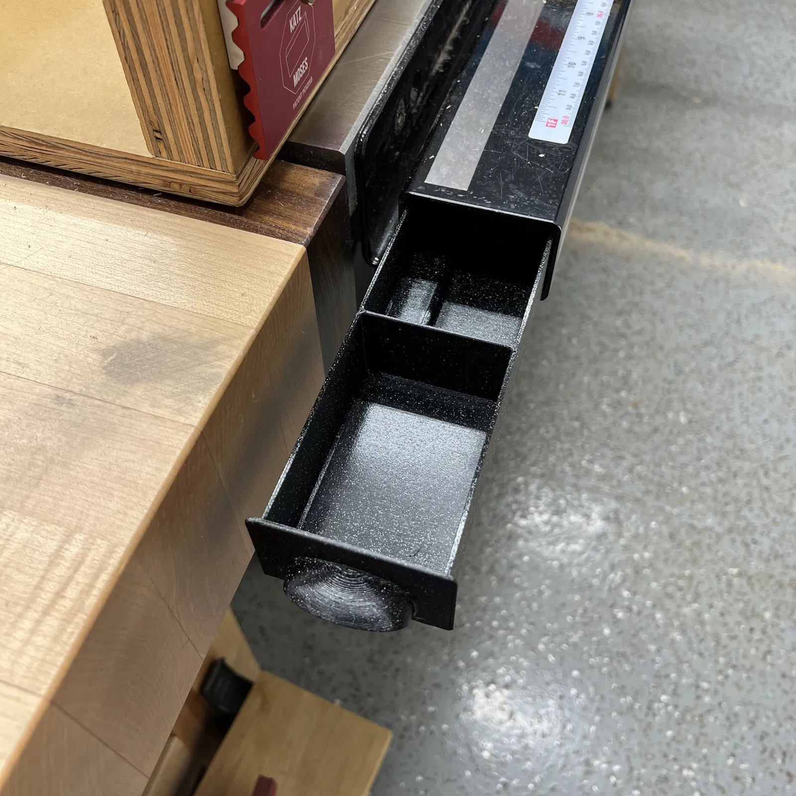 Thêm ngăn kéo cho thanh trượt T-Glide của Sawstop. Có nhiều kích cỡ, kiểu tay nắm và vách ngăn để bà con lựa chọn. Bản gốc có thể tùy chỉnh trên Onshape.