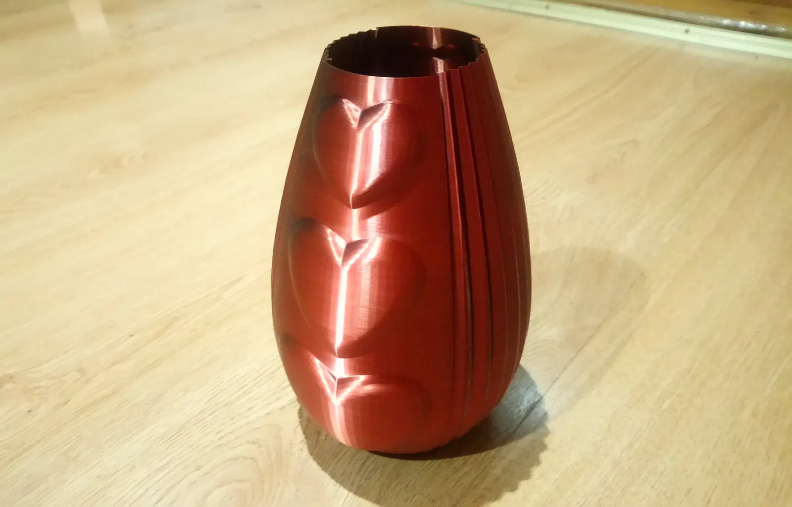 In lọ trái tim đơn giản cho ngày Valentine. In ở chế độ vase mode với chiều cao lớp 0.2 mm, đáy dày 6 lớp. Dùng sợi lụa 2 màu, in trên máy MK4. File in và slicer có sẵn.