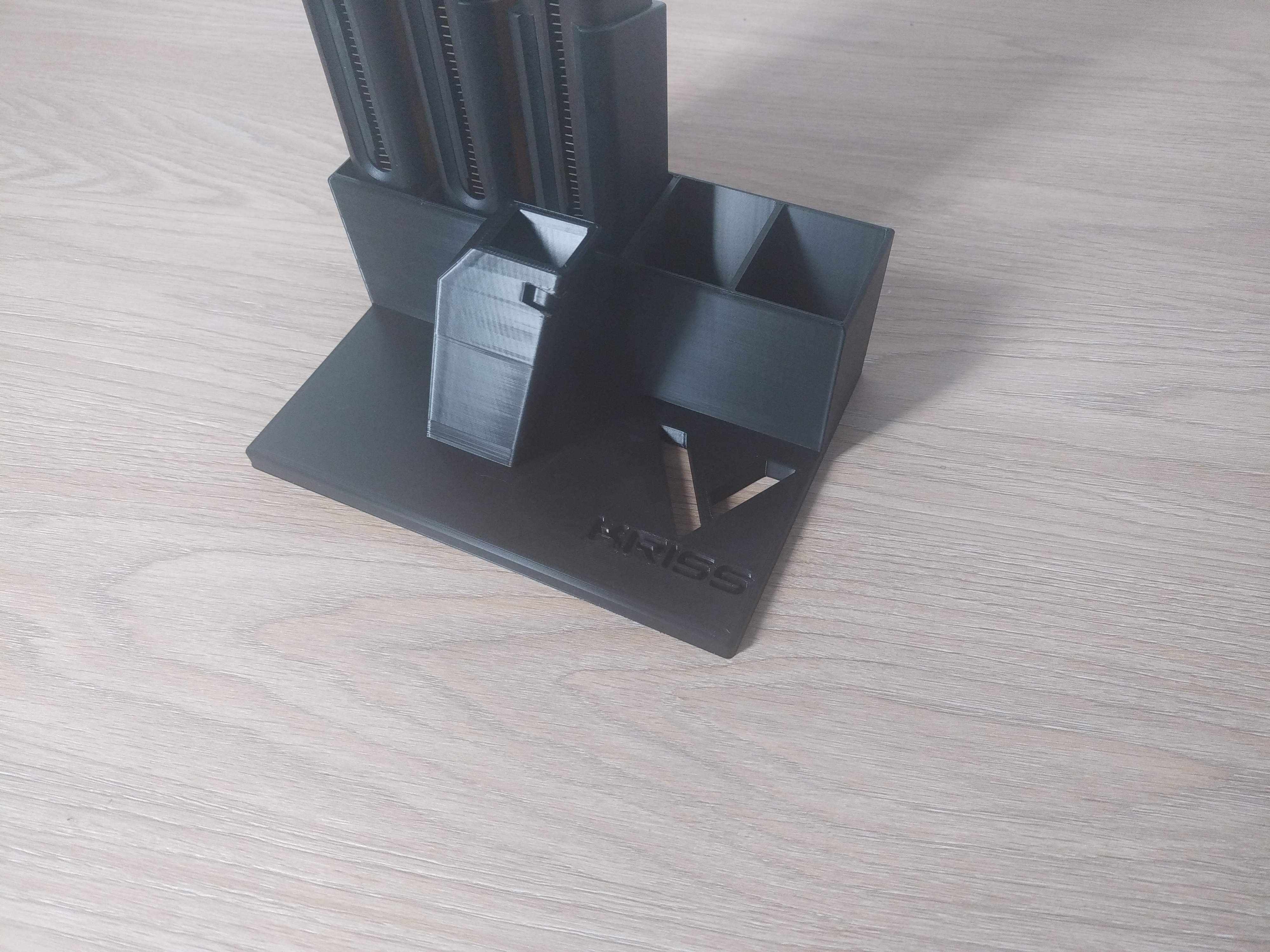 Giá đỡ này được thiết kế cho mẫu súng Kriss Victor, bao gồm cả chỗ để băng đạn, tương thích với các dòng súng airsoft Krytac và Kwa. Bản in với độ dày lớp 0.2mm, 2 vách và 30% infill. Nên in kèm viền bao quanh để tăng độ ổn định.