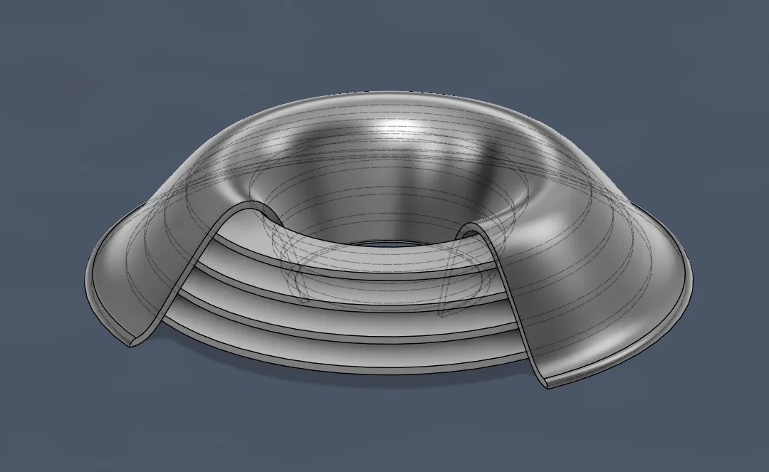 Đây là mô hình minh họa phương pháp vỏ trong giải tích, kèm theo biểu diễn dọc và ngang. Người dùng có thể chọn biểu diễn vỏ theo mức độ xoay và in ra các bộ phận khác nhau như vòng, hình trụ hoặc cả hai.