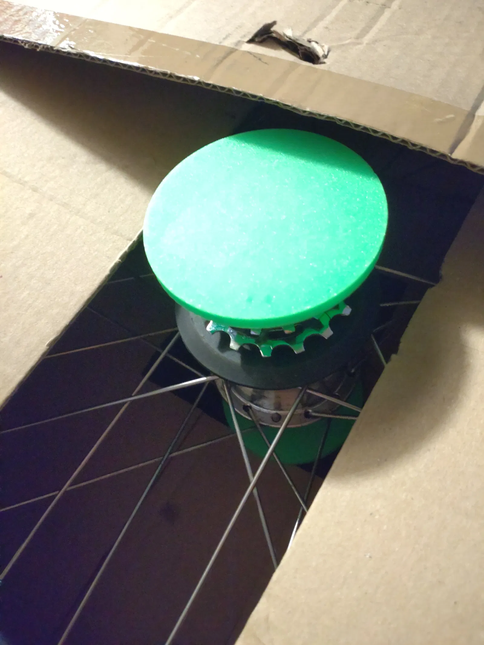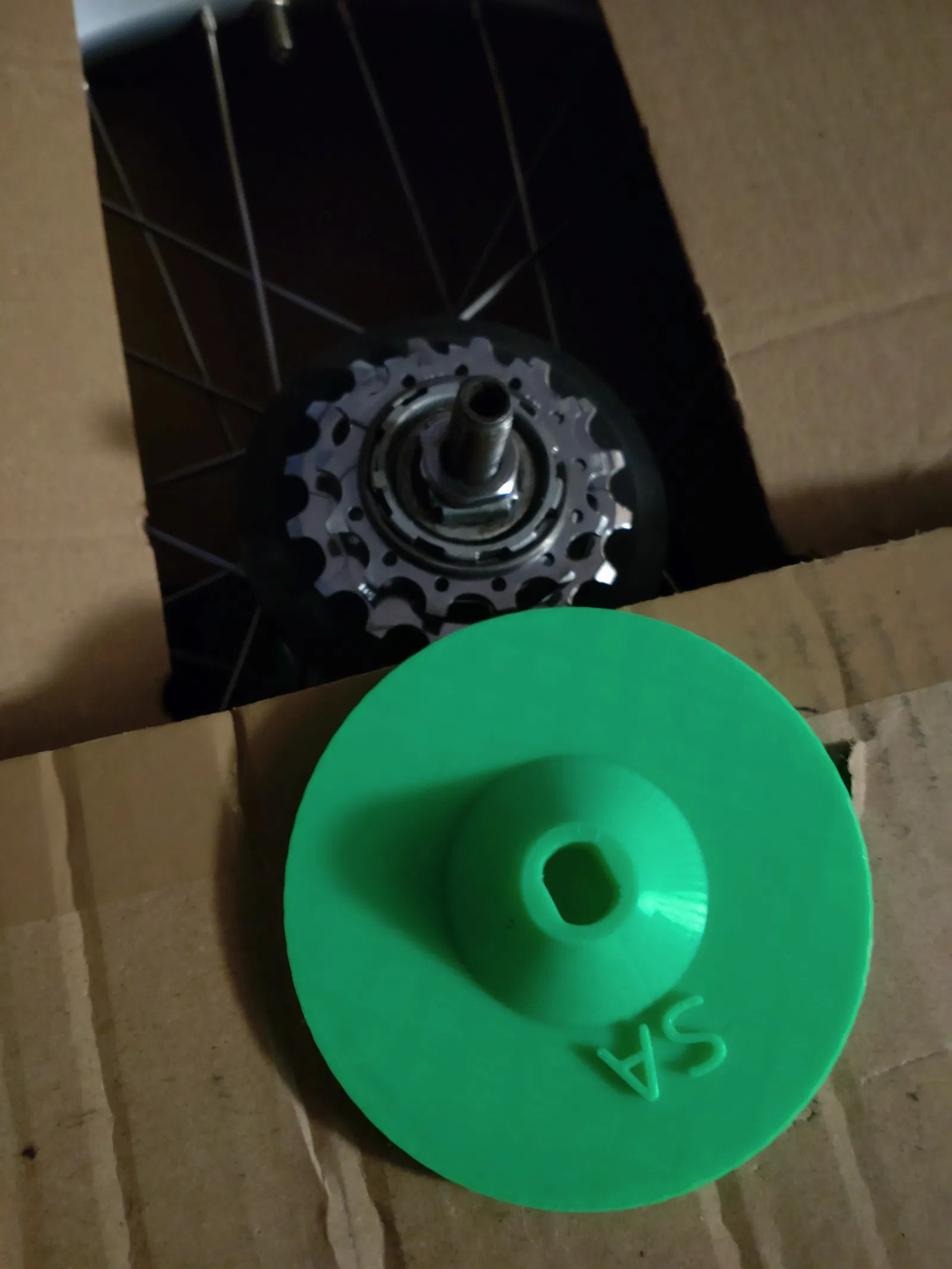 Tui chưa thấy có cái nắp bảo vệ chuyên dụng cho cái đầu trục của mấy cái hub xài sên-đũa (internal gear hub) này bao giờ, một món tuy đơn giản mà lại rất cần thiết khi đóng gói xe đạp để gửi đi: nếu không có đồ bảo vệ, cái đầu trục sẽ đâm thủng thùng carton và bị hư hại đủ kiểu.