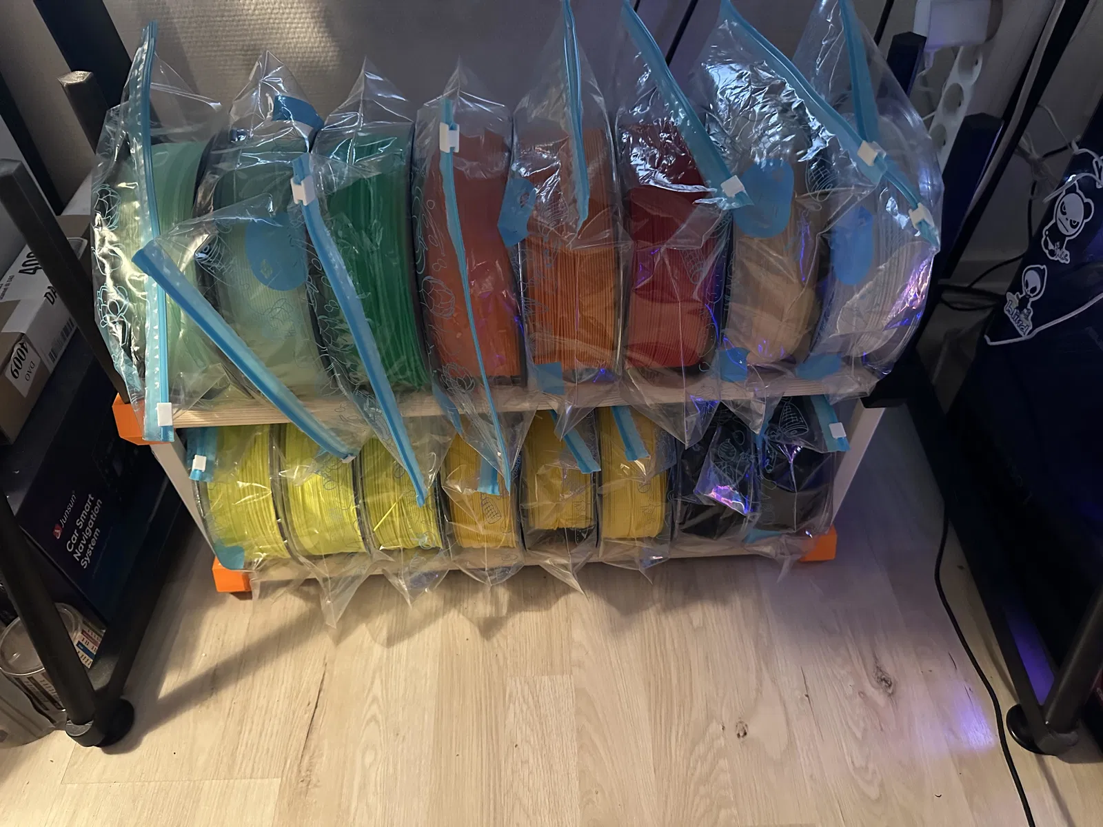 Chỉ cần in 3 cái đáy và 3 cái nắp, cùng với 8 cái Stinger ở hai bên và lắp các thanh tròn vào. Đường kính lỗ là 22mm, nhưng của tui thì in bằng PLA nha.