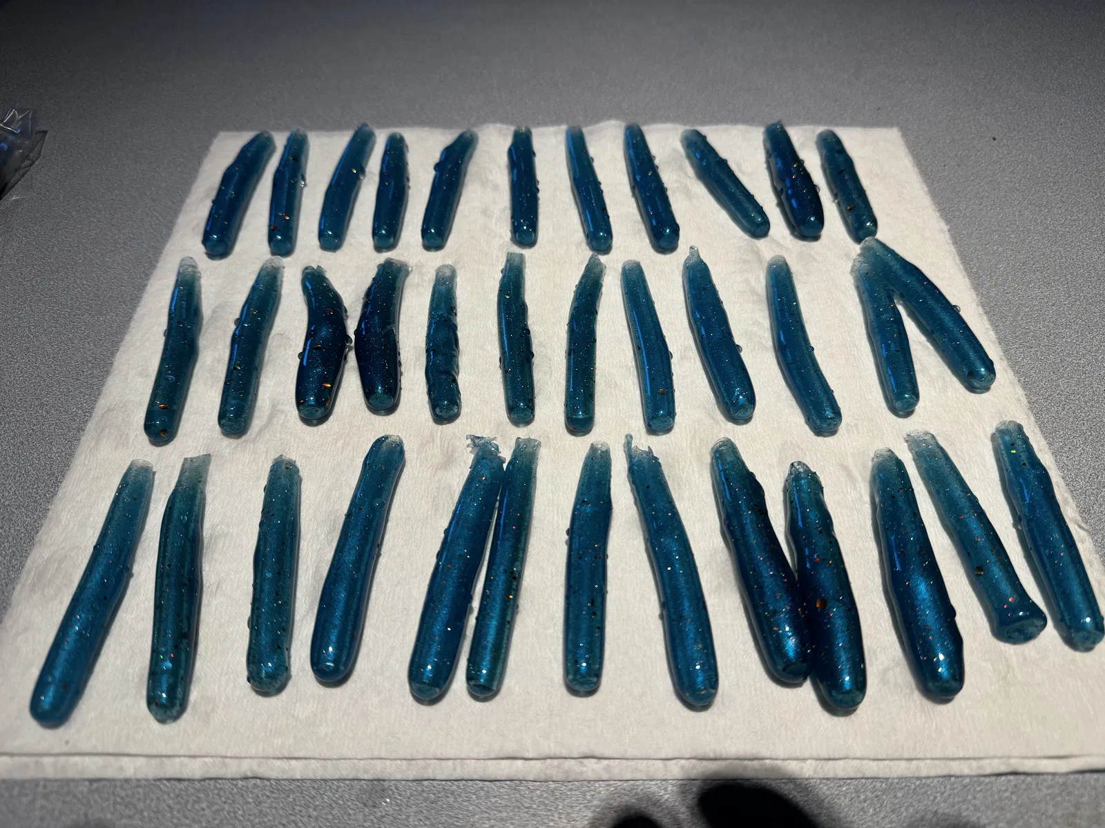 Cái kẹp/khuôn này để giữ các thanh tròn nhúng vào plastisol để làm mồi dạng ống.