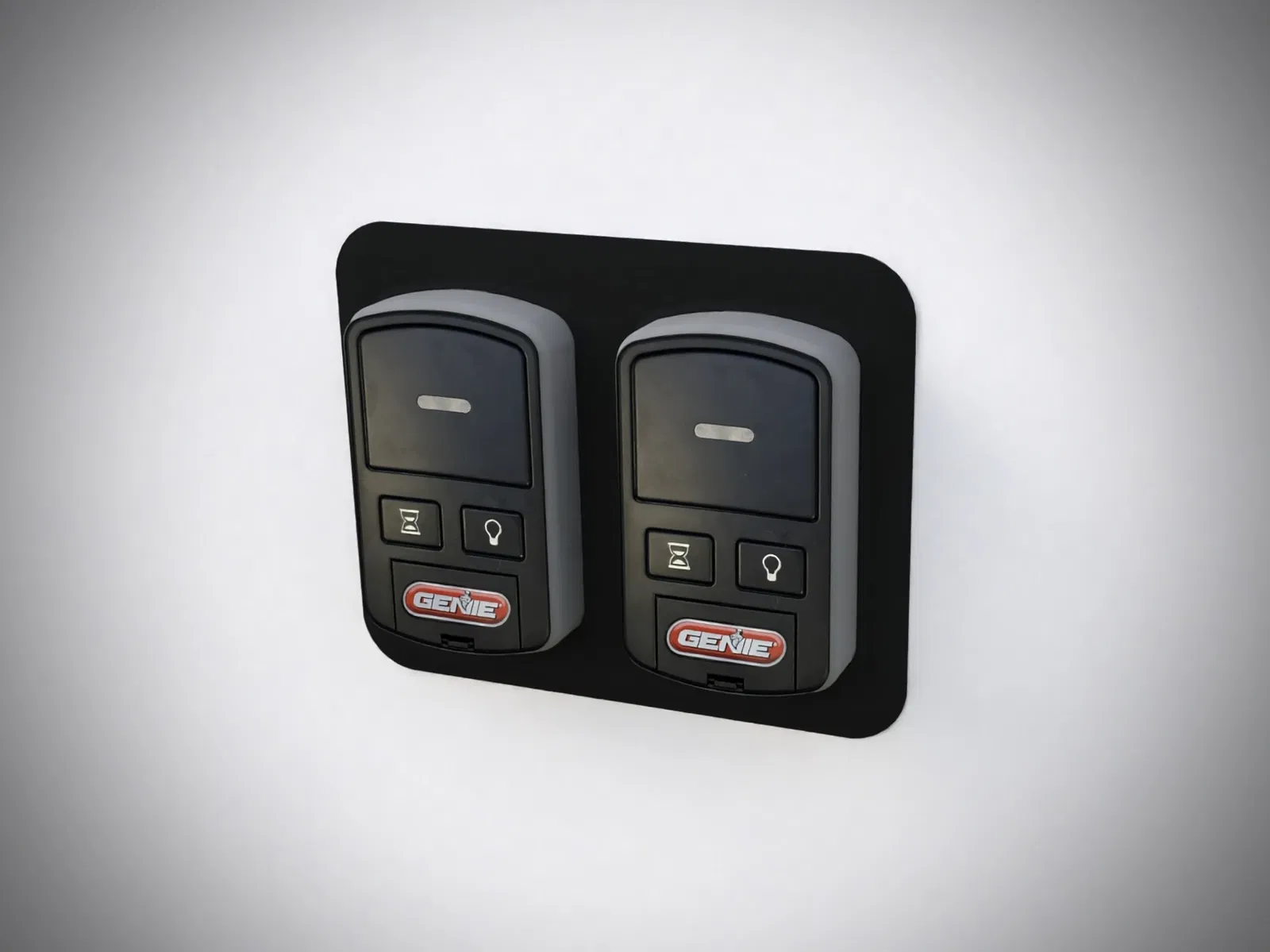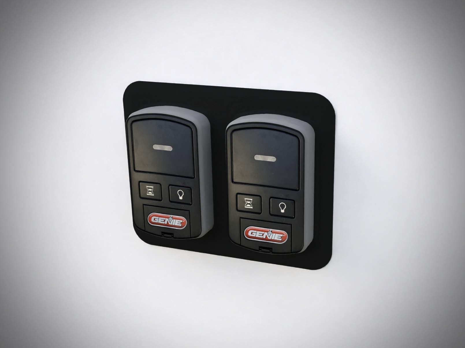Tấm trang trí cho cặp bộ điều khiển không dây Genie. Dán tường bằng 3M VHB hoặc bắt vít trực tiếp. Tương thích với hầu hết bộ mở cửa Genie sản xuất từ 2013, mã GWWC-R.
