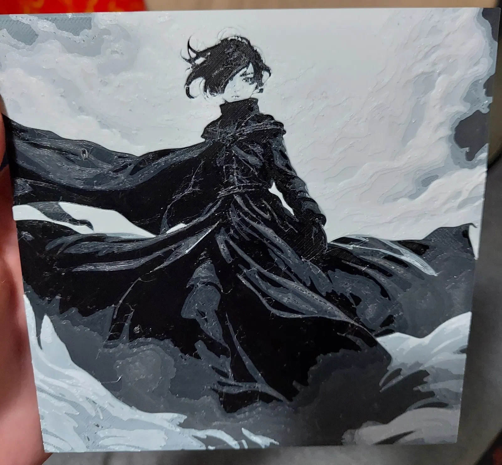 Mô hình nhân vật Vin từ bộ truyện Mistborn của Brandon Sanderson. Bản in 3D này tái hiện chân dung Vin với chiếc áo choàng sương mù đặc trưng, được tạo ra bằng Midjourney và có thể in bằng các loại filament PLA phổ biến. Hướng dẫn chi tiết về cài đặt in và đổi màu filament được cung cấp.