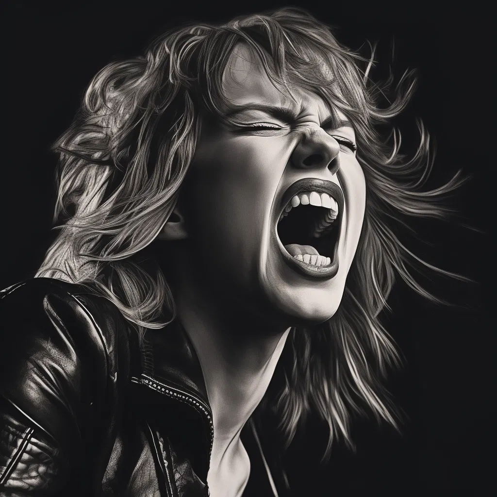 Ca sĩ Lzzy Hale của ban nhạc Halestorm. Tui kiếm hình trên mạng mà thấy hổng có cái nào ưng ý hết trơn, nên tui tự sinh ra bằng Midjourney.