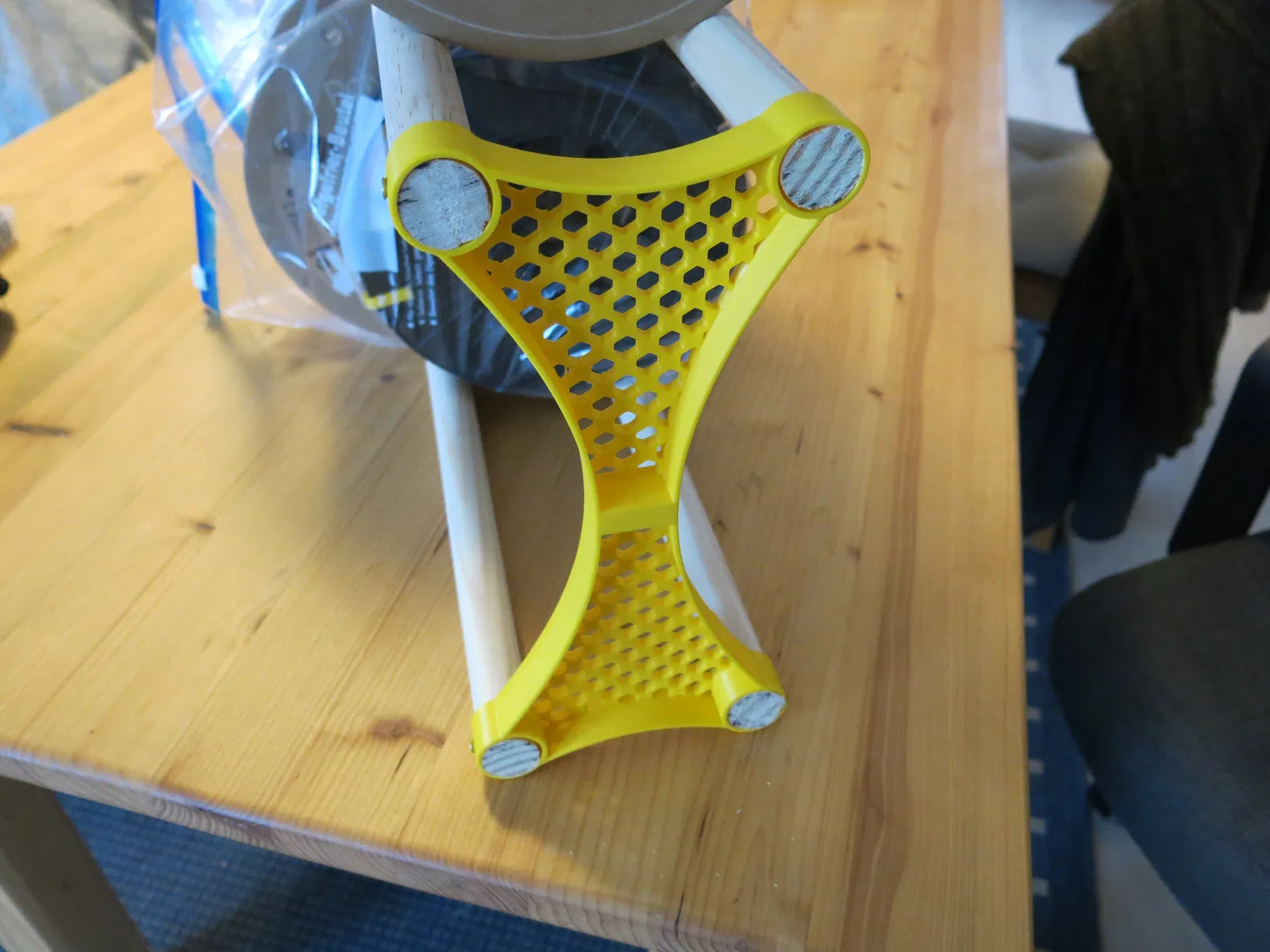 Mẫu kệ đựng filament đứng tự do này, gồm hai phần dán lại với nhau, là giải pháp lưu trữ filament hiệu quả. Lỗ cắm vừa cán chổi 24mm và sử dụng vít Spax 3x12mm để cố định chắc chắn.