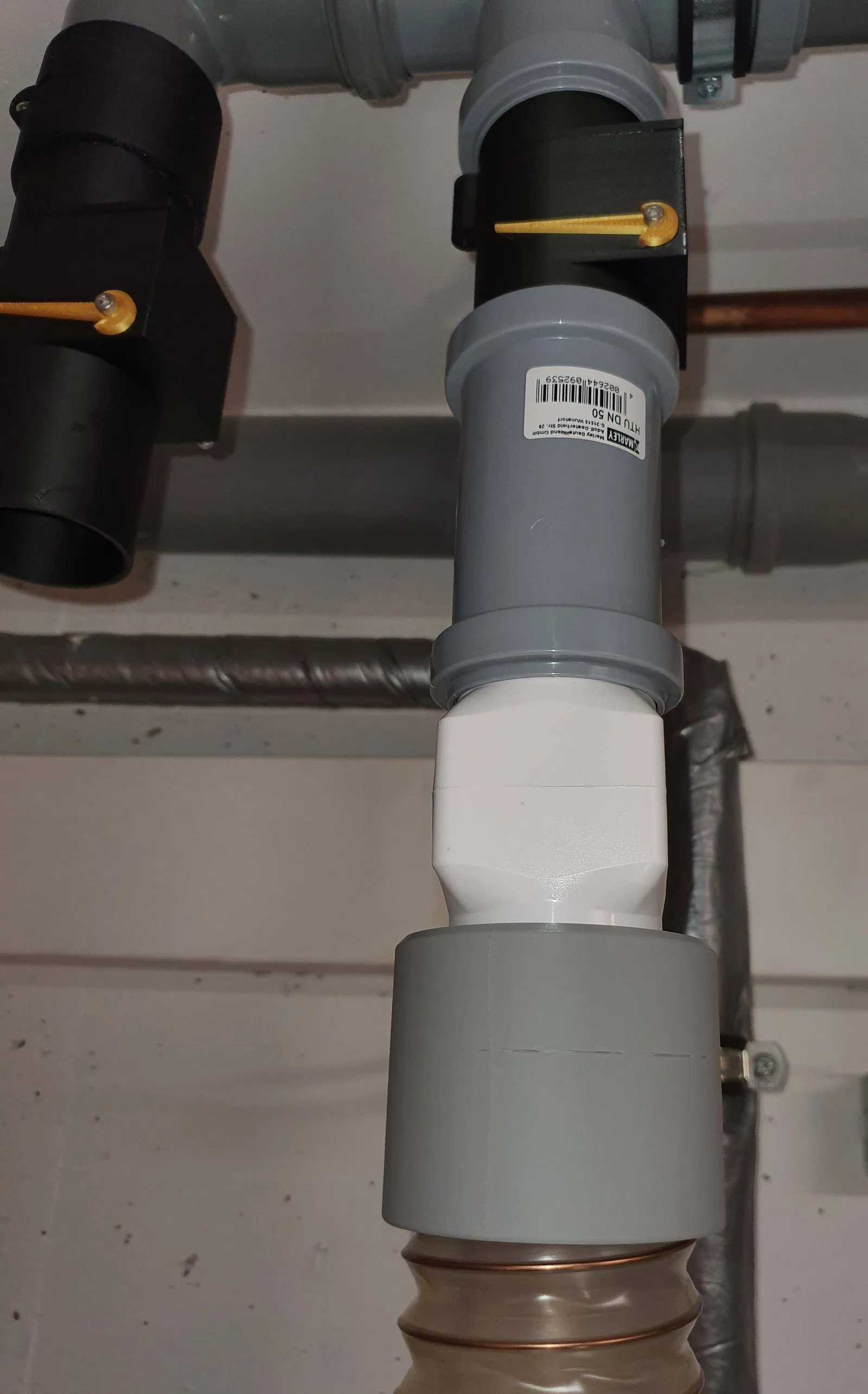 Bộ chuyển đổi dễ lắp đặt để sử dụng ống mềm 60mm với ống 50mm (HT DN50). Đơn giản chế tạo từ silicone hoặc acrylic, kết nối ống hút bụi 60mm vào hệ thống 50mm, đảm bảo kết nối chắc chắn và kín.