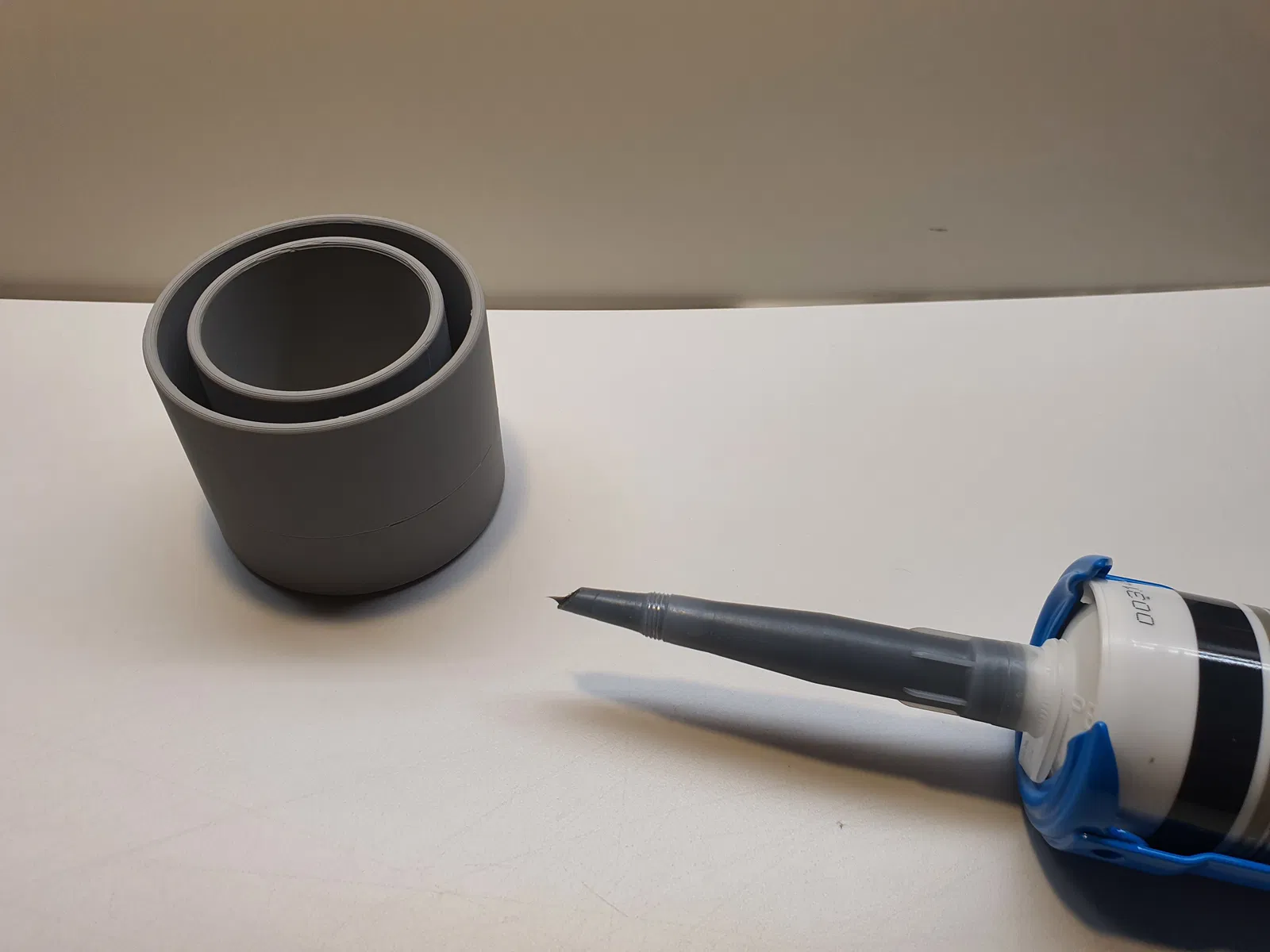 Chỉ cần cho một ít silicone hoặc acrylic vào khe và lắp ống vào. Vặn nhẹ một chút sẽ giúp ích nhiều. Trên hình ảnh, bạn có thể thấy cách lắp ráp hoạt động. Silicone hoặc acrylic sẽ đông cứng và tạo ra một kết nối chắc chắn và kín.