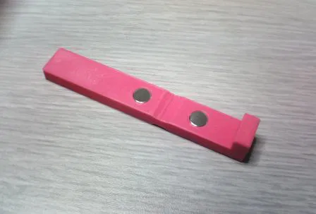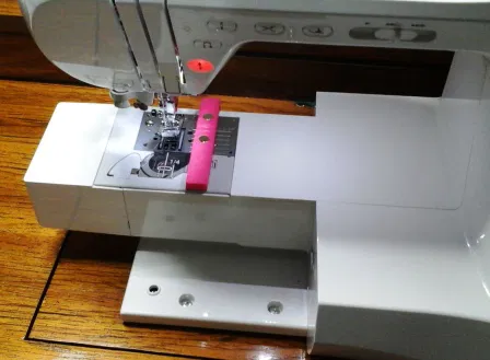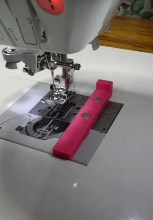 Một dụng cụ dẫn đường may bằng nam châm. Cái này tui làm cho bà xã tui xài, có khoét rãnh để lọt ốc và có nam châm để gắn vô máy, có thể lật mặt được.