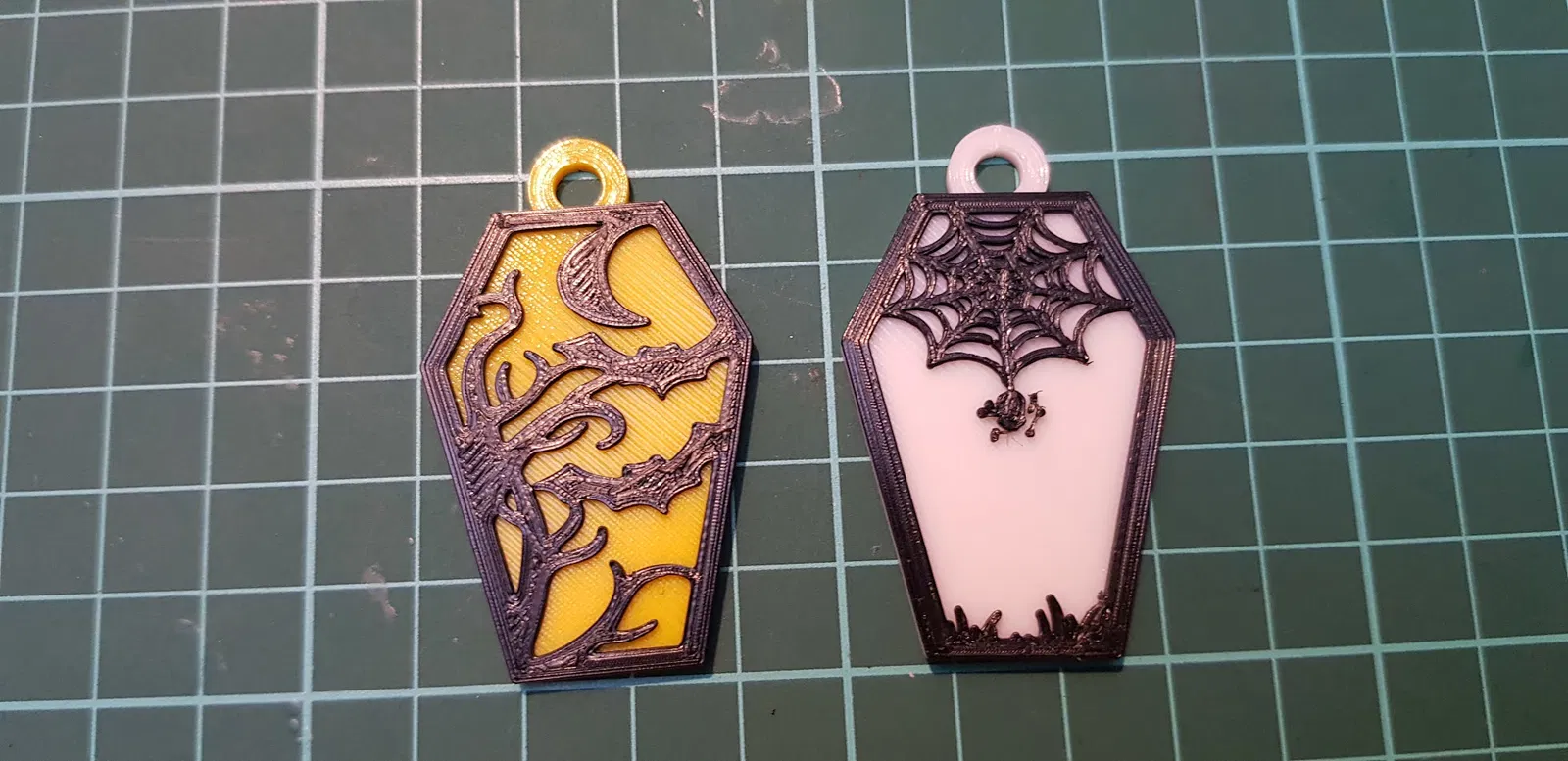 In Móc Khóa Quan Tài Halloween với máy in Kingroon KP3S, sử dụng sợi PLA và cài đặt đổ đầy 100%. Bản in bao gồm nền 10 lớp và phần nổi 5 lớp, mỗi lớp dày 0.2mm, tạo ra chi tiết sắc sảo cho món đồ trang trí Halloween độc đáo của bạn.