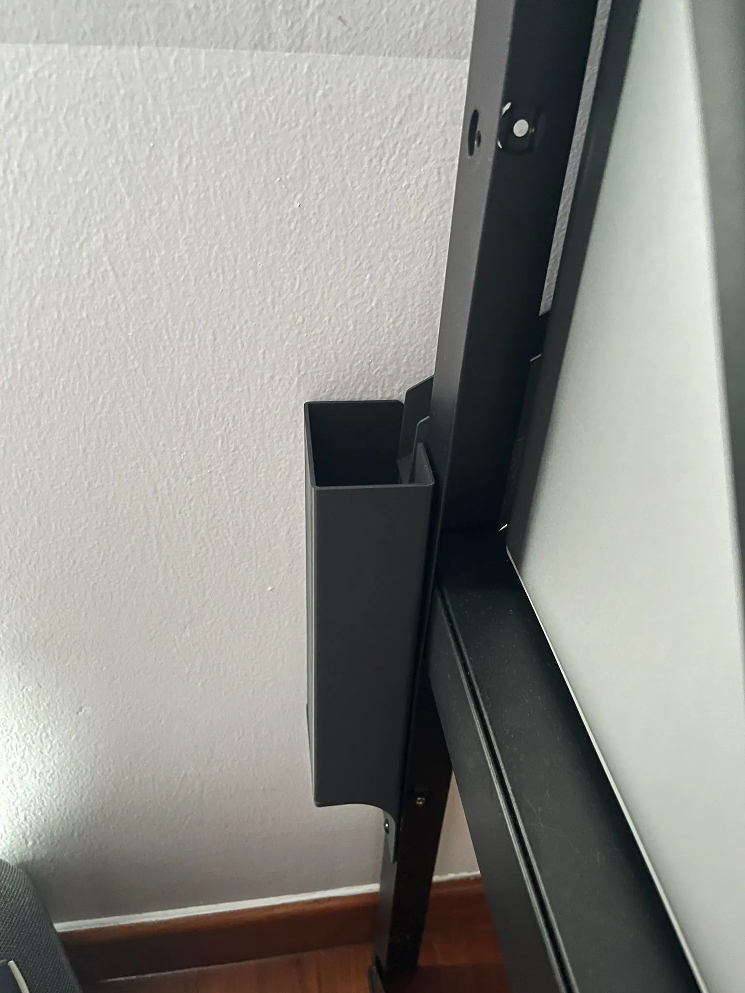 Máng hứng được gắn vào giá đỡ bằng keo, sau đó giá đỡ có thể được gắn vào máy in bằng nam châm. Điều này cho phép điều chỉnh vị trí máy in trên kệ một cách linh hoạt.