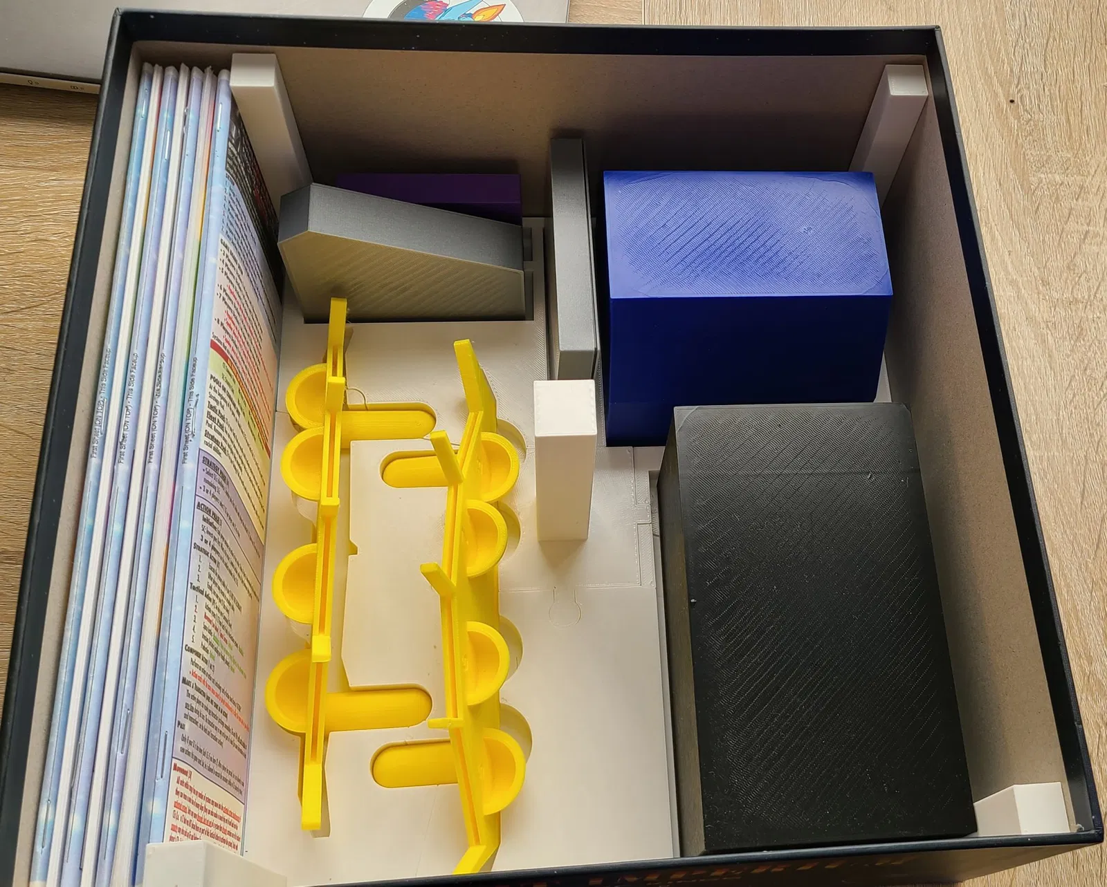 Tôi đã in rất nhiều phụ kiện cho Twilight Imperium và muốn có một nơi gọn gàng để lưu trữ tất cả chúng. Với các Codex, tôi cũng có một vài mảnh phụ không vừa với Bộ Tổ Chức của Fabmaszter. Do đó, tôi đã làm các hộp phù hợp và một bộ chèn hộp để đặt mọi thứ vào hộp POK vốn trống rỗng của tôi.