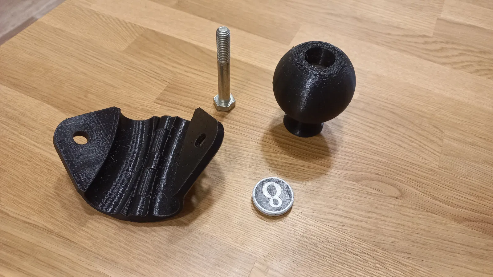 Cục chặn vô lăng bi-a số 8 này được thiết kế cho vô lăng có đường kính ngoài 365mm và đường kính cắt 25mm. Các bộ phận có thể in nguyên khối và lắp ráp đơn giản với bu lông M8, long đền và đai ốc M8. Khuyến khích sử dụng PETG hoặc ABS.