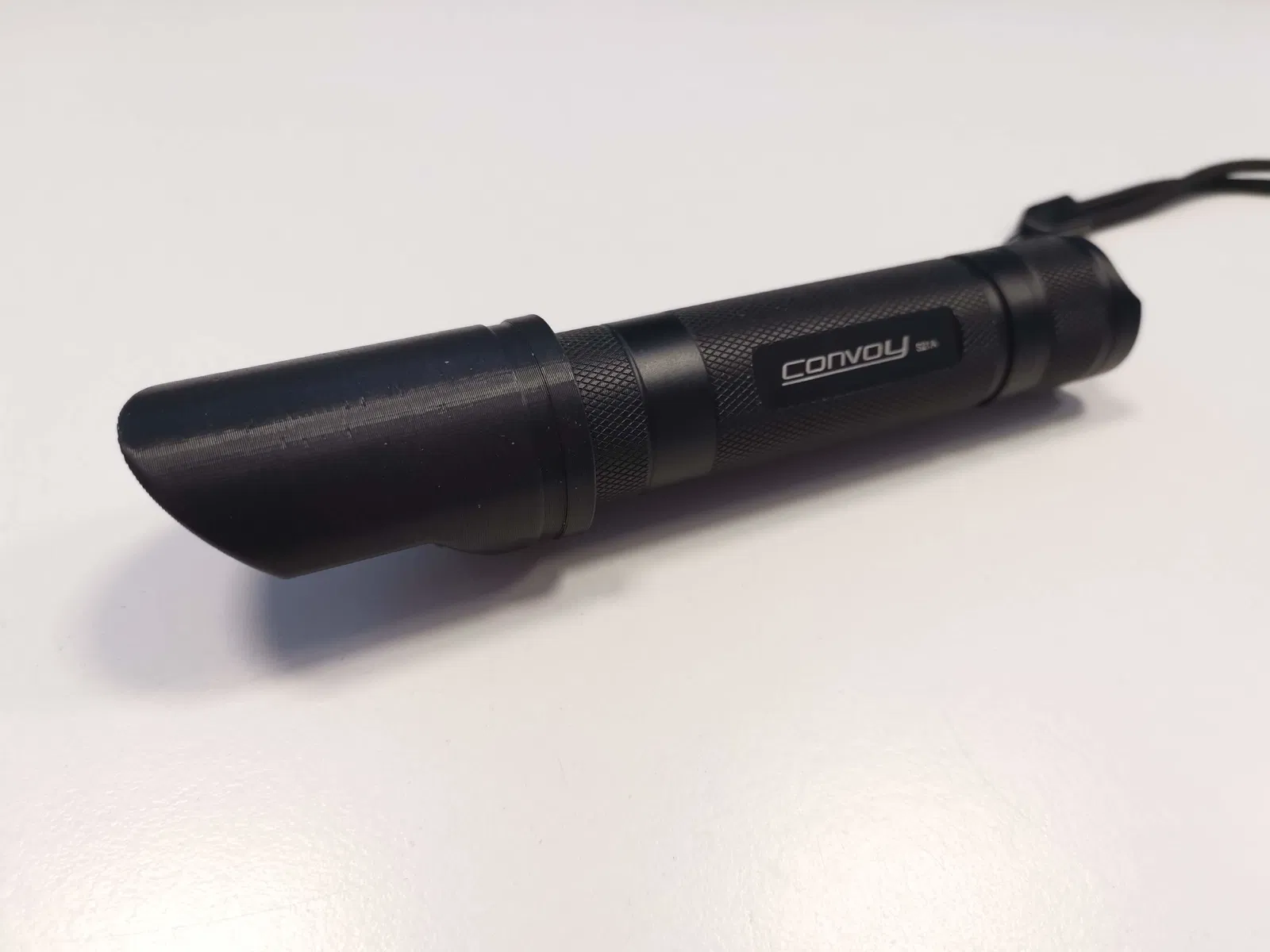 Chụp đèn pin xe dành cho đèn pin Convoy S21A. Sản phẩm in từ PETG, ABS/ASA hoặc sợi tương tự chịu nhiệt để tránh bị chảy khi sử dụng đèn ở chế độ cao.