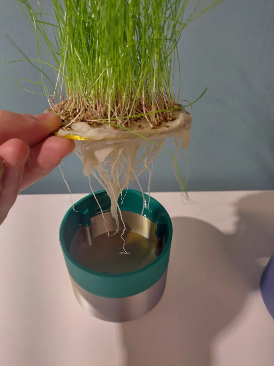 Để trồng bằng nước, bạn sẽ cần cái hũ và cái khay lọc nước. Cái nắp thì tùy chọn thôi. Đặt một miếng khăn giấy lên khay lọc nếu hạt của bạn bị lọt qua đó nha. Đổ nước đầy hũ. Đặt khay lọc có hạt giống vào hũ. Rồi đậy nắp lại nếu bạn muốn. Đặt ở nơi theo hướng dẫn trên gói hạt của bạn. Nhớ đừng để hạt bị khô nha. Khi rễ hình thành, chúng sẽ tự hút nước lên và bạn chỉ cần đổ đầy hũ mỗi 1-2 tuần thôi.