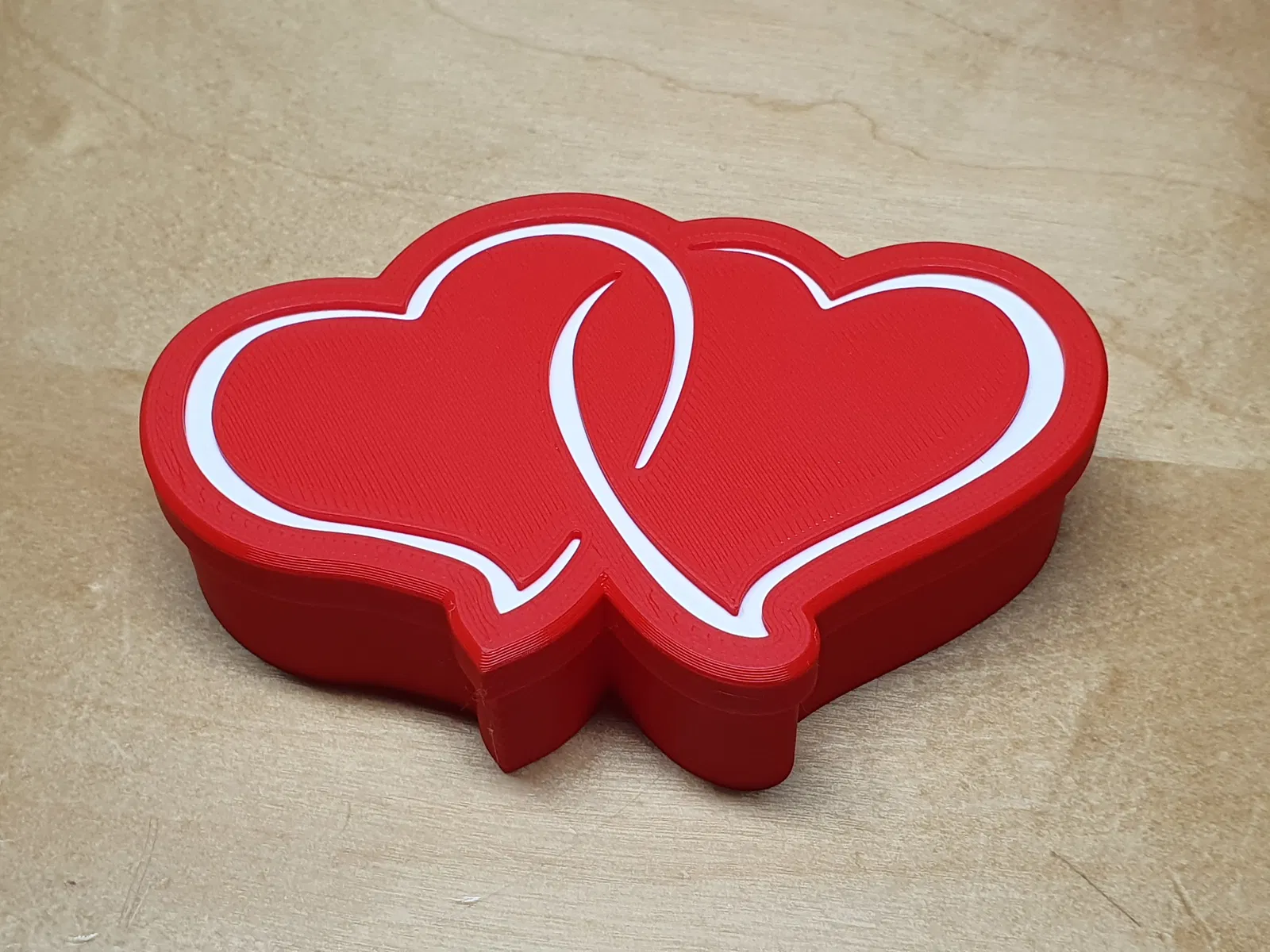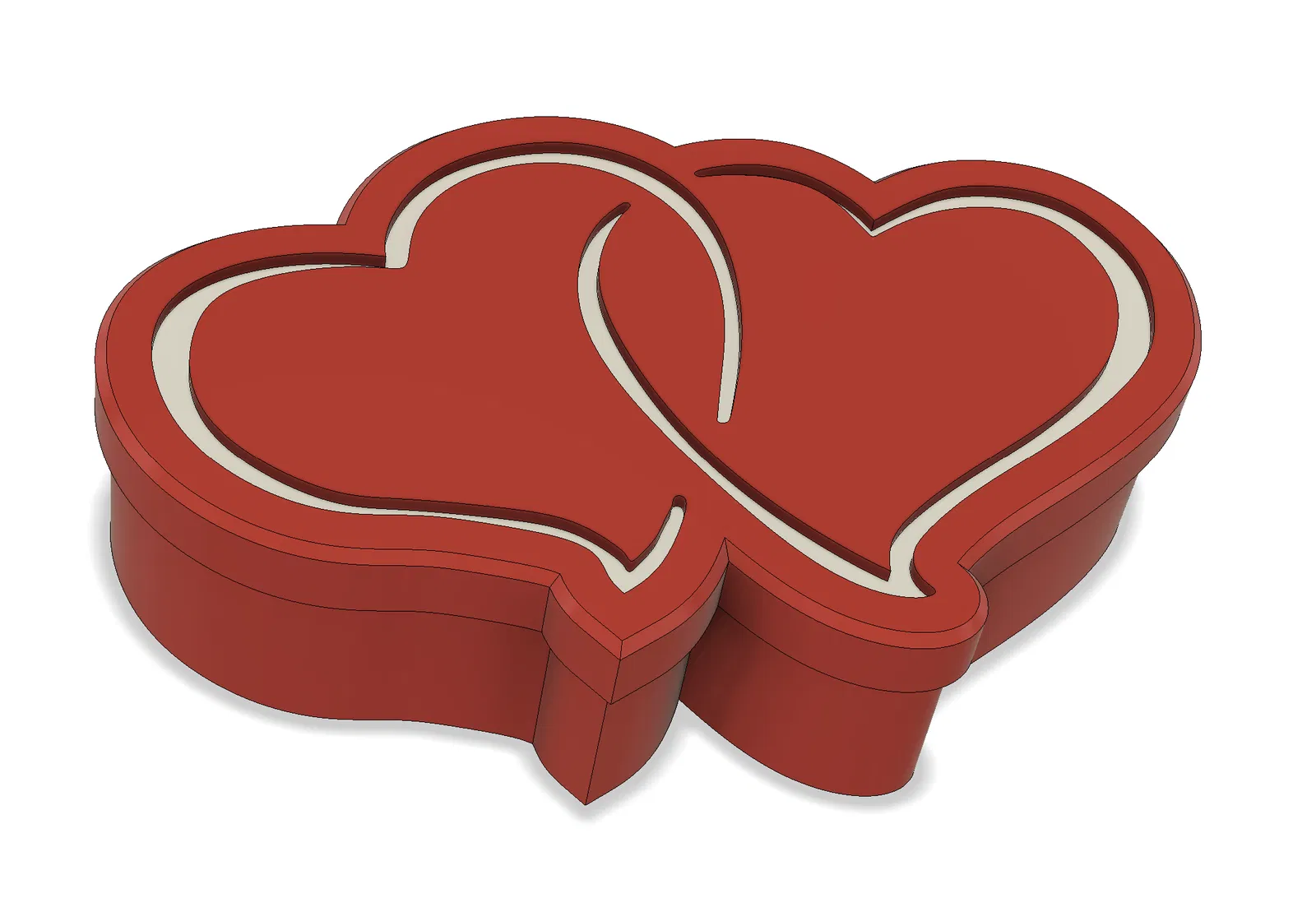 Hộp hai phần hình hai trái tim lồng vào nhau. Hoàn hảo làm quà tặng cho ngày Lễ Tình Nhân, đám cưới hay bất cứ dịp nào đặc biệt. Bạn có thể in mà không cần hỗ trợ nếu đặt đúng hướng.