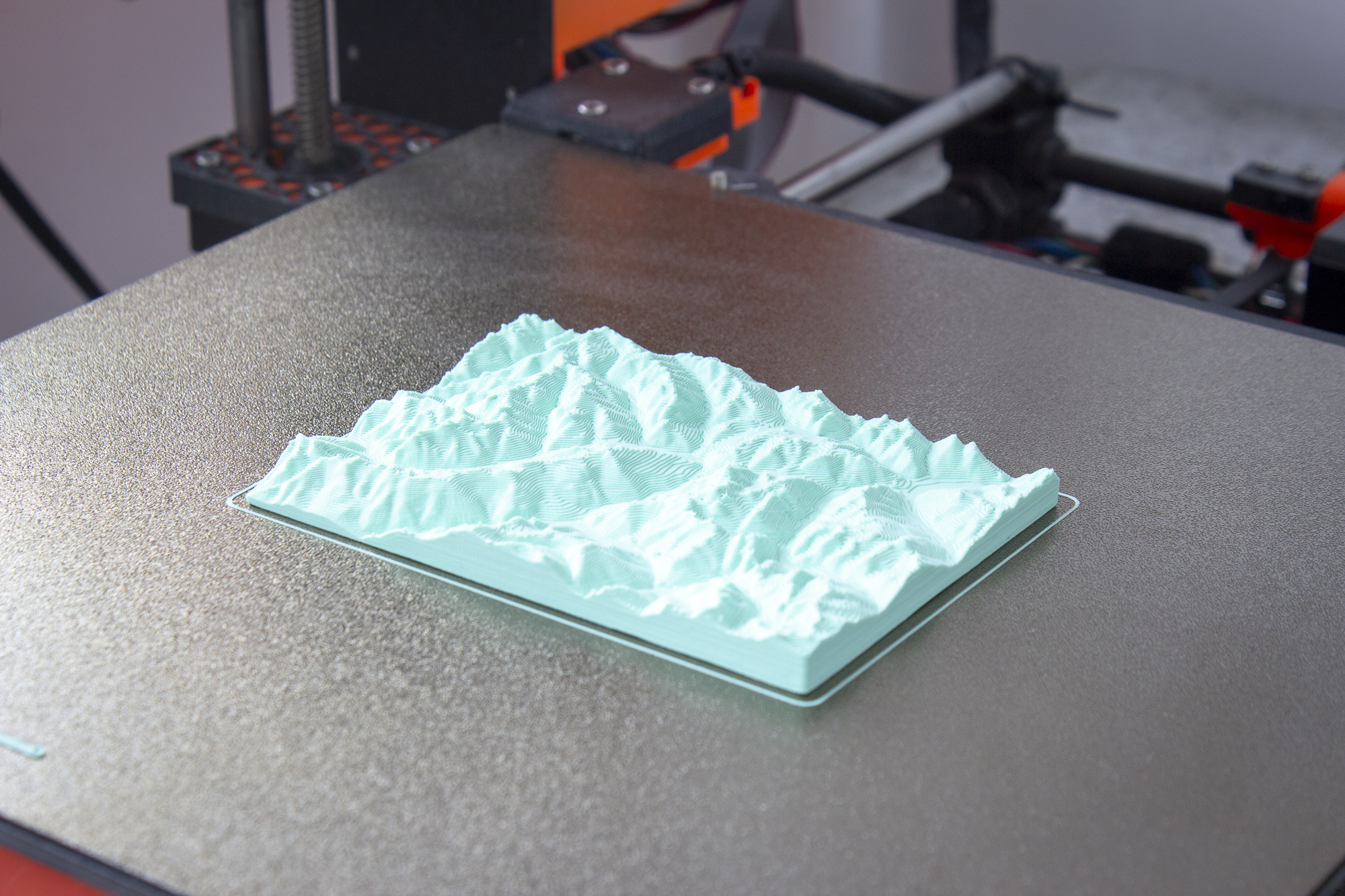 Cái trong hình là phiên bản High Poly (cũng có bản Low Poly luôn nha). Mình in bằng profile 0.2 layer height thông thường, làm cho các lớp địa hình nổi lên rõ lắm khi nhìn gần. Nhiệt độ nozzle mình chỉnh thấp xuống để tránh bị tơ, nhưng có thể không cần thiết với máy in đời mới đâu.