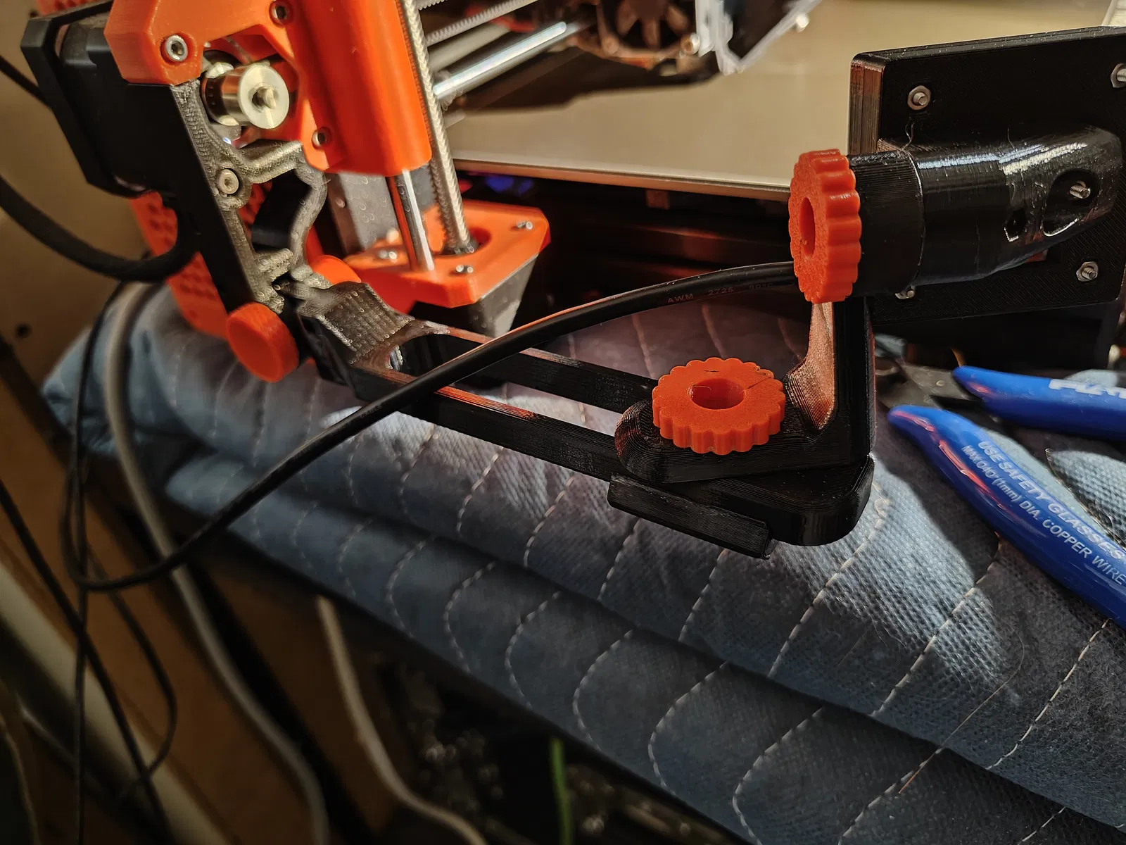 Cánh tay được kết hợp với một liên kết đực từ Giá đỡ Camera Raspberry Pi của Sneaks để tương thích với MK3S. Đế Arducam được sửa đổi để gắn theo kiểu "gương" do vị trí đặt camera. Bao gồm cả phiên bản vỏ và nắp tương thích với camera lấy nét cố định.