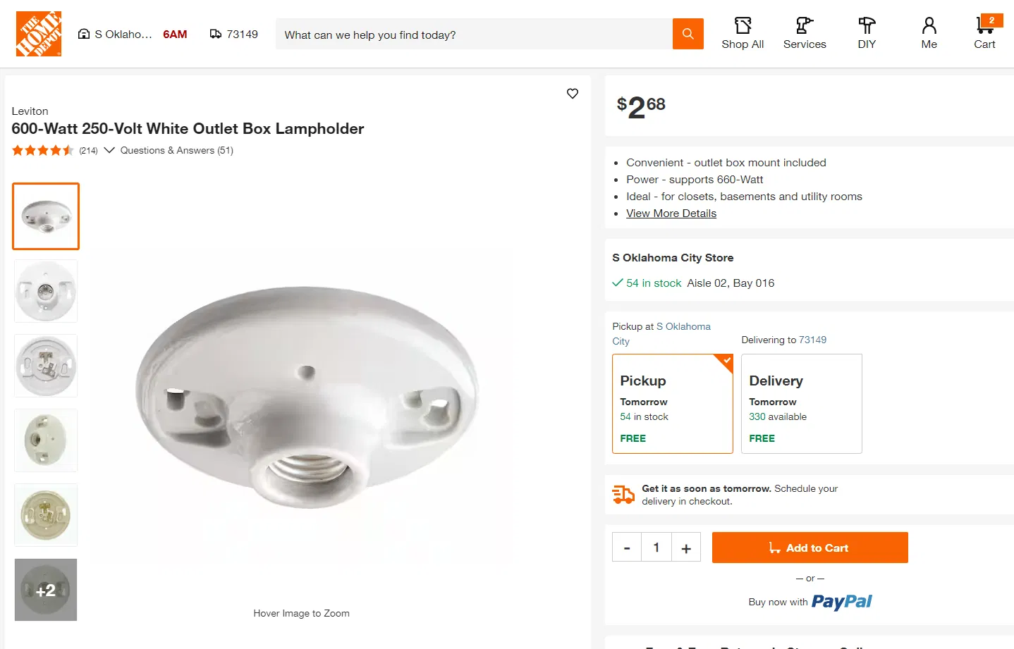1 x Đui đèn sứ $2.68 https://www.homedepot.com/p/Leviton-600-Watt-250-Volt-White-Outlet-Box-Lampholder-R50-49875-000/207106566