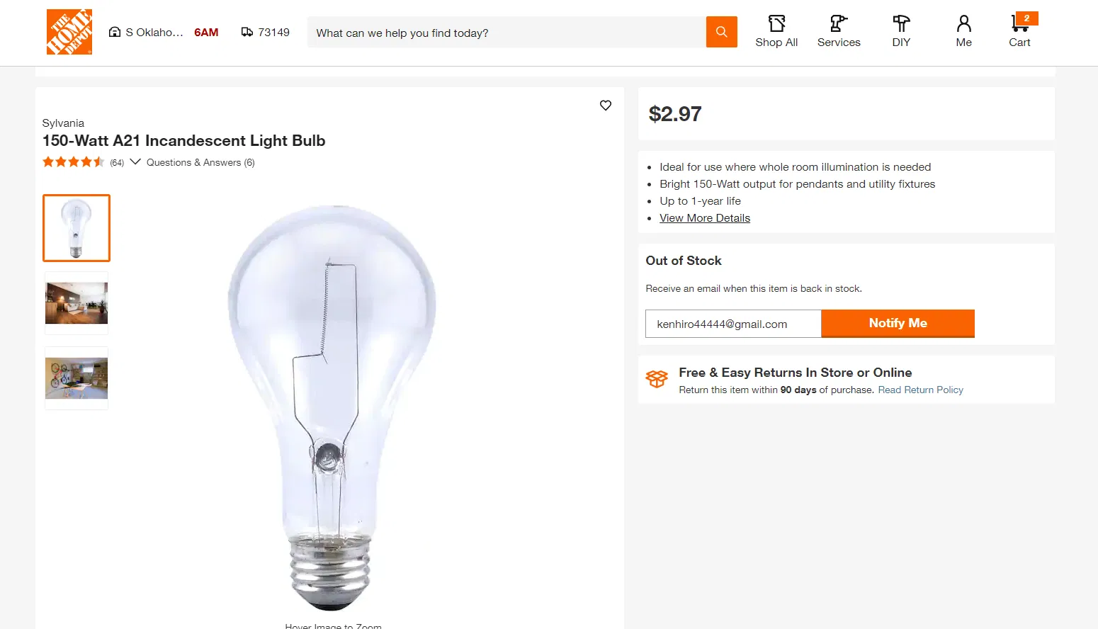 1 x Bóng đèn sợi đốt A21 150-Watt $3 https://www.homedepot.com/p/Sylvania-150-Watt-A21-Incandescent-Light-Bulb-10598/203117449