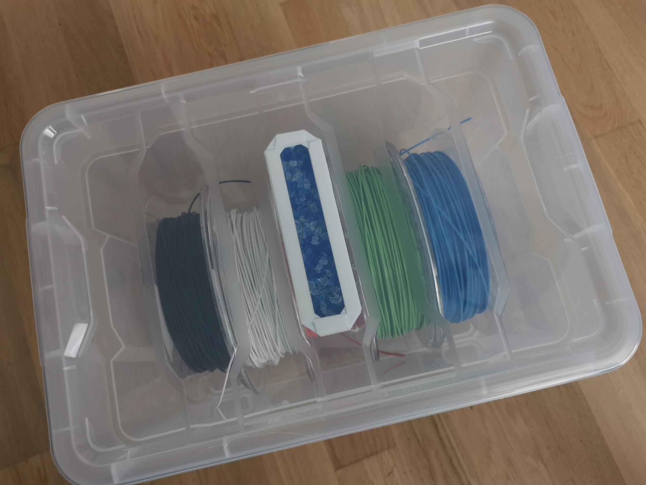 [Tiếng Việt bên dưới]\n\n[EN]\n\nTui sắp xếp lại mấy cuộn filament và cất chúng vào hộp mới, tui muốn giữ cho chúng khô ráo, tìm hoài không thấy mẫu nào ưng ý, nên tui tự tạo ra cái này…\n\nVật liệu thêm - ốc vít:\n\n 2 cái → M3 x 10mm\n băng keo hai mặt\n hạt hút ẩm (silicagel)\n\nKỹ thuật:\n\n In trên Prusa Mini+\n Đầu phun 0.4mm - lớp dày 0.2mm\n In bằng PrimaSelect PETG trắng\n In bằng PrimaSelect ASA+ trắng\n\n[FR]\n\nJ'ai réorganisé mes filaments en les rangeant dans de nouvelles boîtes. Je souhaitais les garder au sec, je n'ai pas trouvé de modèle qui convenait, j'ai créé le mien.\n\nMatériel supplémentaire - vis:\n\n 2 pieces → M3 x 16mm\n scotch double face\n silicagel\n\nTechnique:\n\n Imprimé sur Prusa Mini+\n Buze 0.4mm - couche 0.2mm\n Imprimé avec Prima Select PETG blanc\n Imprimé avec PrimaSelect ASA+ blanc