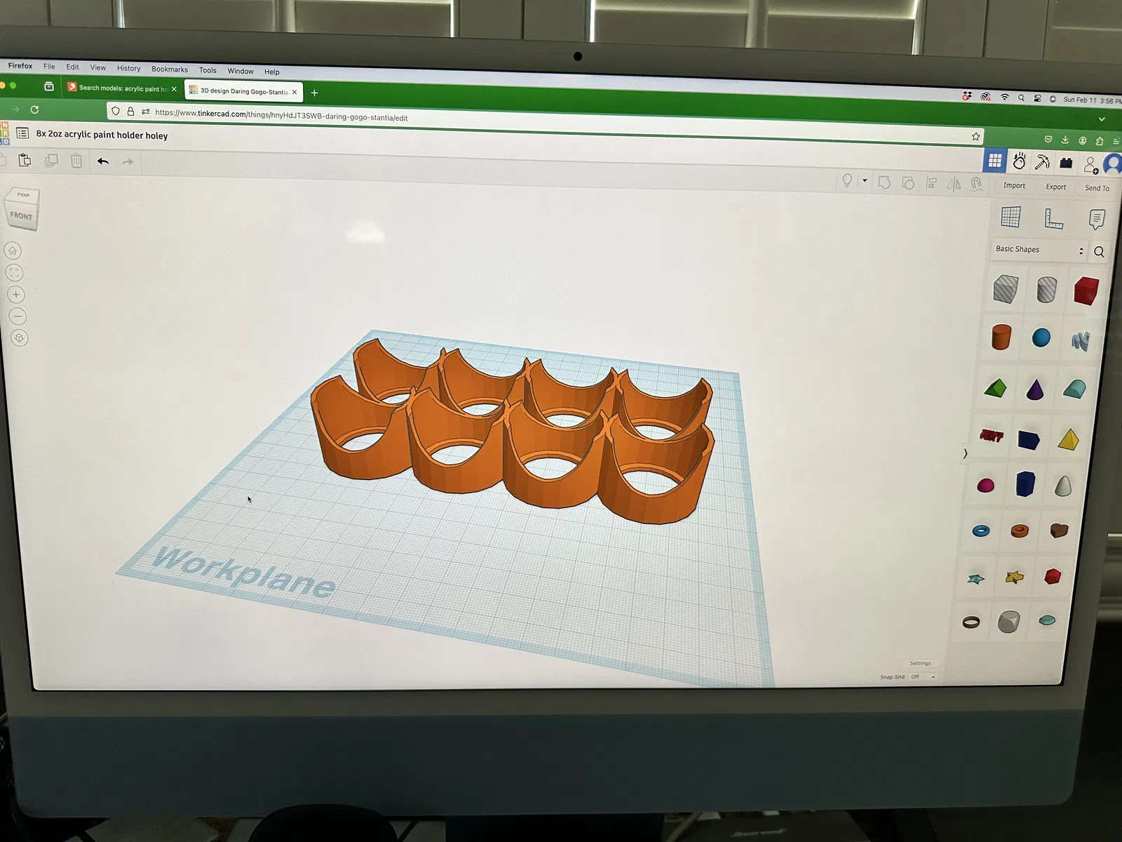 Khay đựng 8 chai sơn acrylic 2oz (đường kính khoảng 42mm) này giúp giữ cho các chai sơn của bạn luôn gọn gàng và đứng thẳng. Đây là dự án đầu tiên dùng TinkerCad, được thiết kế để tối ưu vật liệu và tăng tính thẩm mỹ.