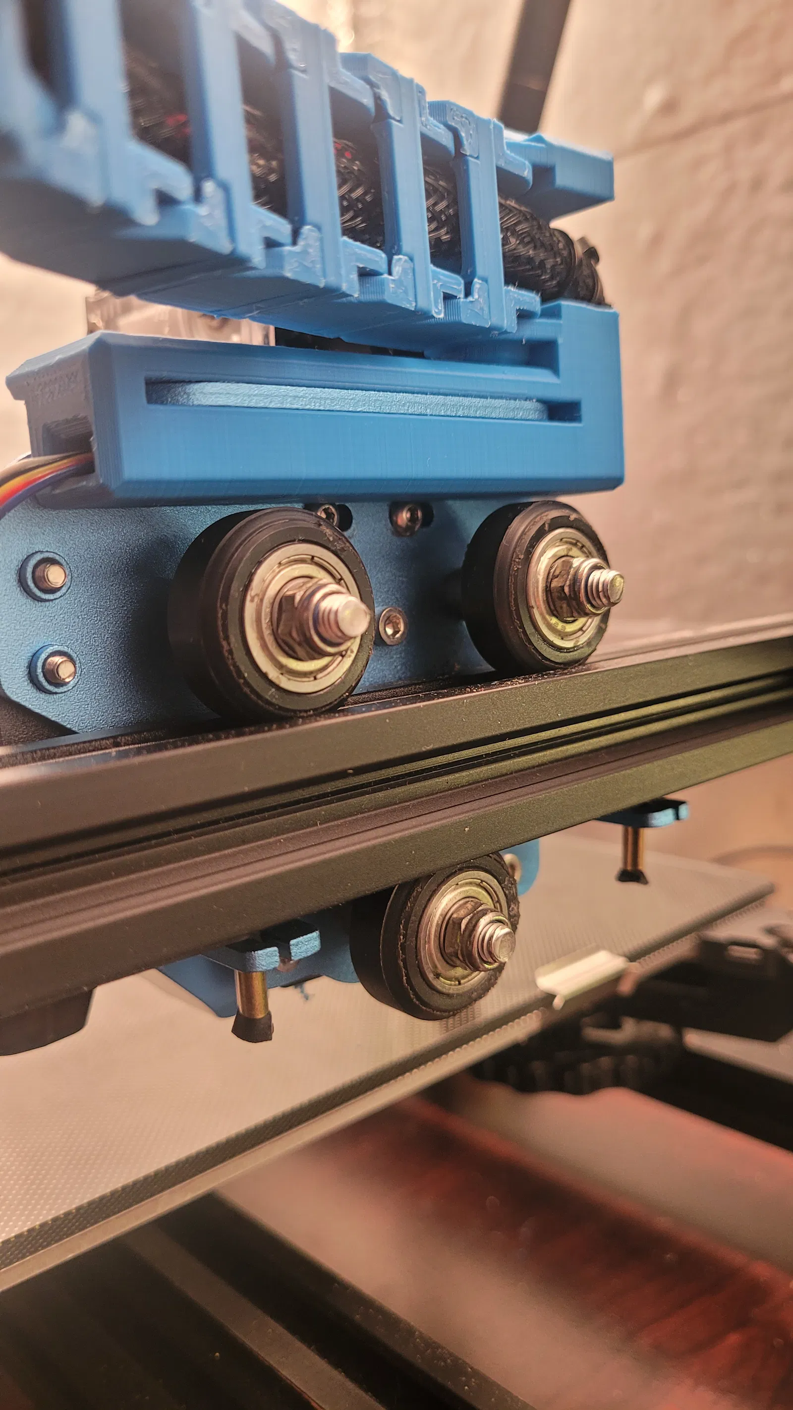 Như bạn có thể thấy trên hình cuối cùng, PETG sẽ không hoạt động trong buồng sưởi ấm. PETG màu đen này đã hoạt động tốt khi tôi sử dụng máy in của mình ở khu vực mở. Nhưng khi tôi bắt đầu sử dụng trong buồng kín có nhiệt độ (55°C-65°C), nó bị chảy xệ và nóng chảy. Khuyến nghị in chúng bằng ABS (màu xanh nhạt). Tôi đã in với độ đổ đầy 20%, hỗ trợ BẬT, đổ đầy dạng gyroid.