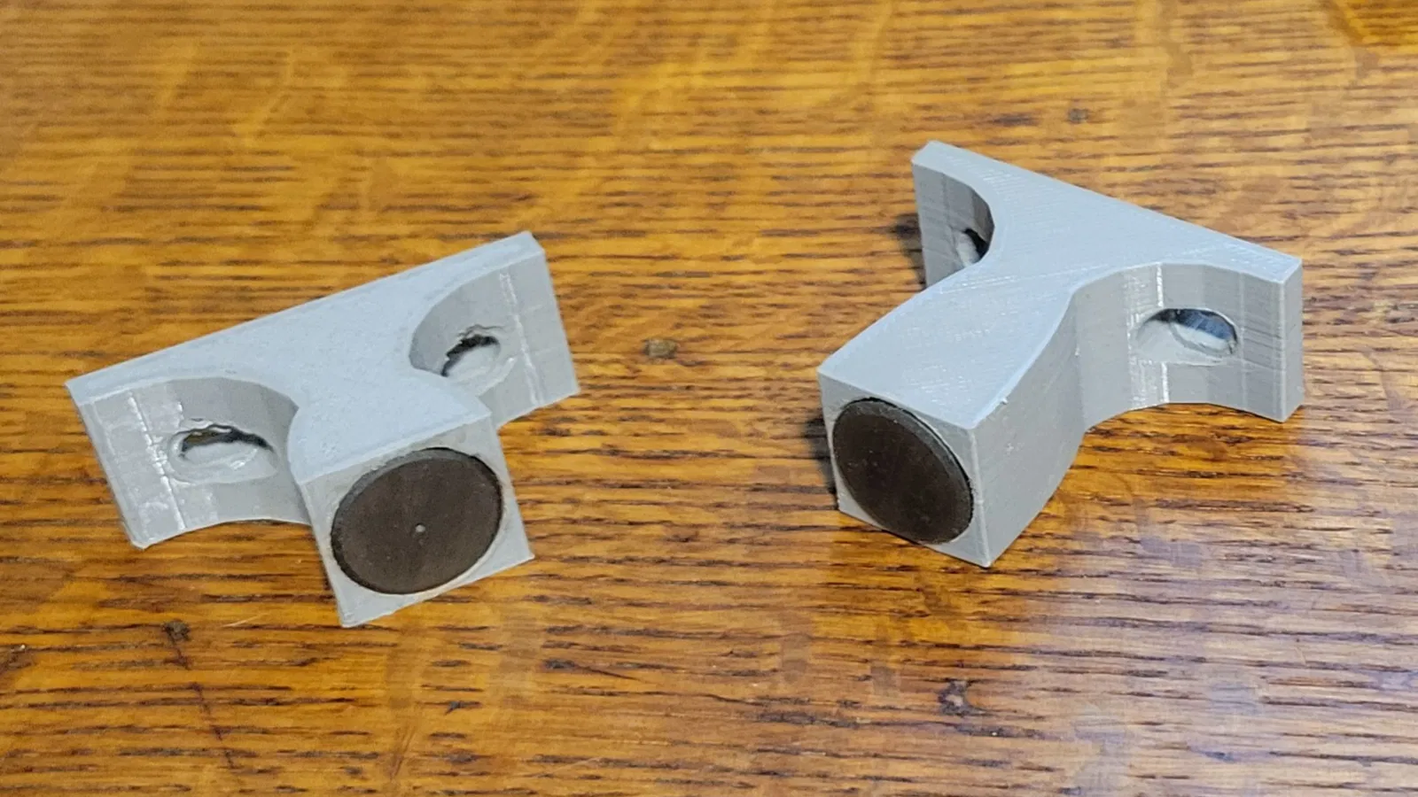 Chặn cửa nam châm 2 mảnh hoặc giữ cửa. Một mảnh dài hơn, một mảnh ngắn hơn. Ghép đôi tùy ý theo nhu cầu. Nó sử dụng hai viên nam châm tiêu chuẩn 18mm. Nam châm càng mạnh càng tốt.
