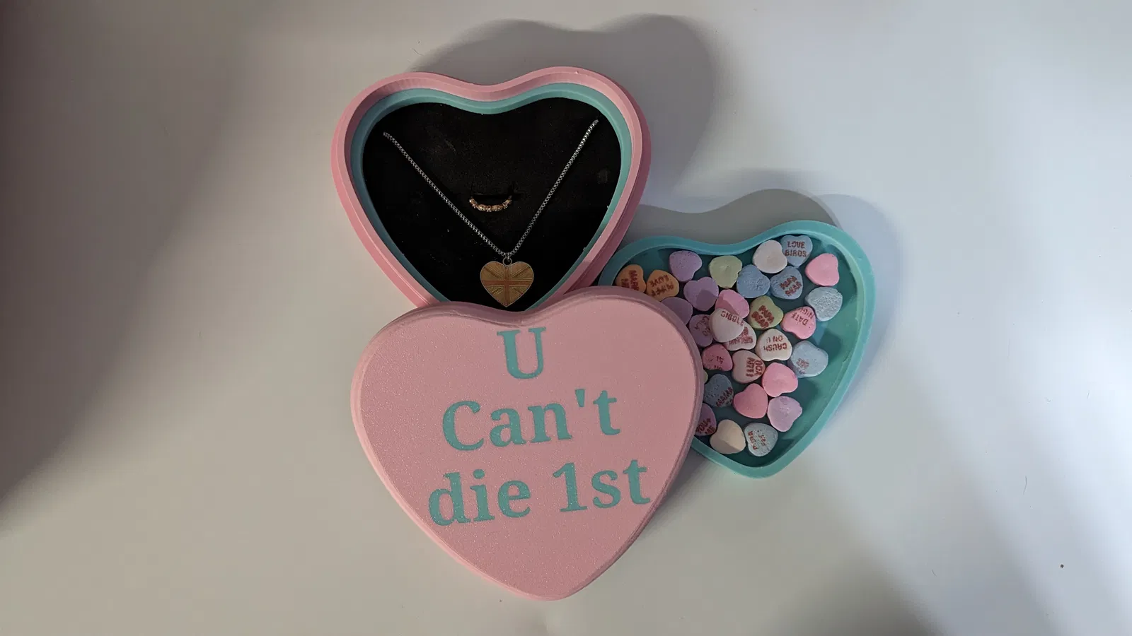 Hộp đựng trang sức/hộp quà lấy cảm hứng từ trái tim ngọt ngào / Trái tim trò chuyện. Hoàn hảo để làm quà tặng, có thể in màu với Bambu MMU hoặc tùy chỉnh chữ theo yêu cầu.