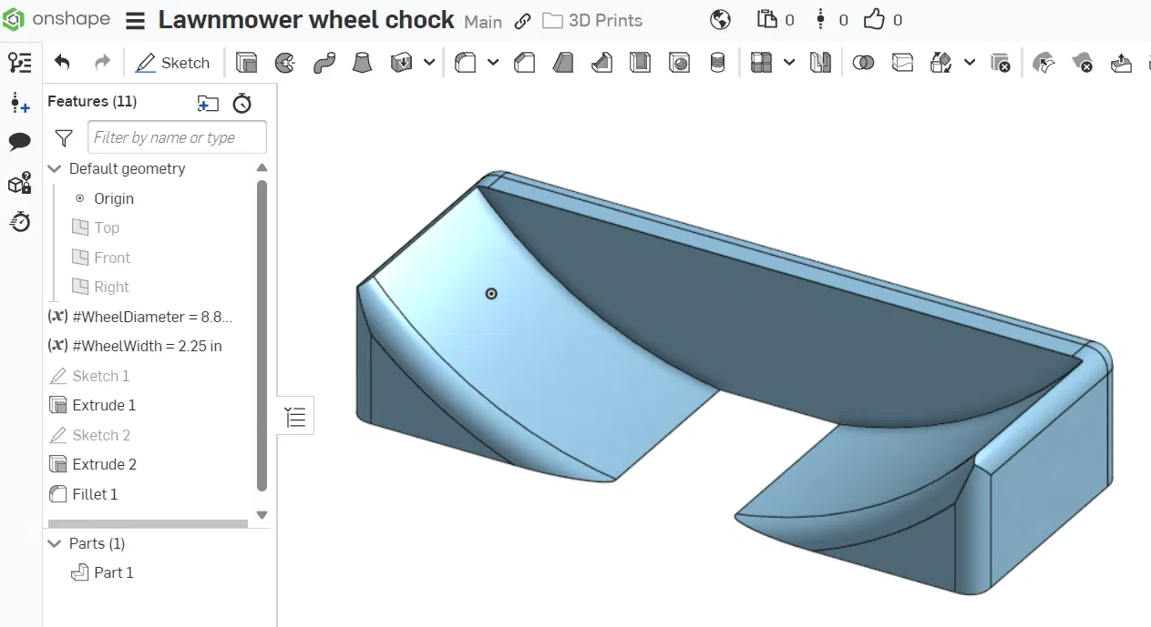 Dùng chặn bánh xe này để giữ cho máy cắt cỏ đẩy của bạn không bị lăn lung tung khi đang sử dụng hoặc cất giữ. Có sẵn file Onshape để bạn tùy chỉnh theo ý thích.