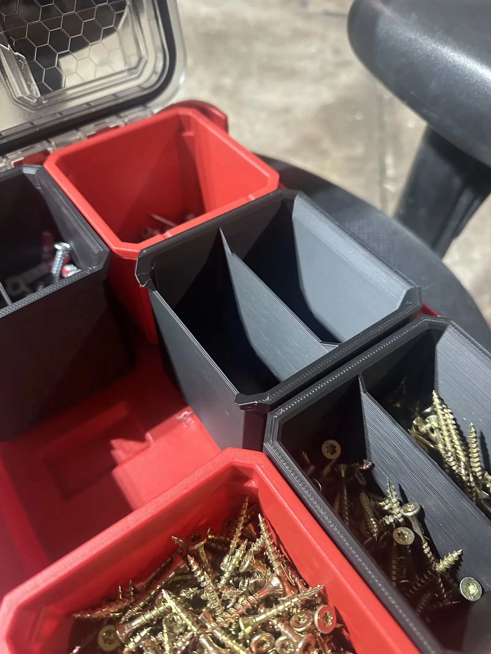 Hộp đựng sâu Milwaukee Packout được remixed để vừa với máy in có build volume nhỏ hơn, giữ nguyên chức năng chia ngăn tiện lợi.