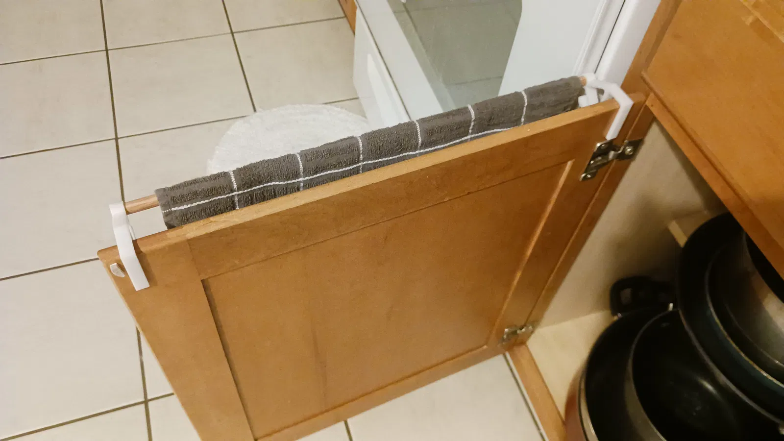 Thiết kế để treo khăn tay. Kẹp vào cánh cửa tủ để giữ khăn.