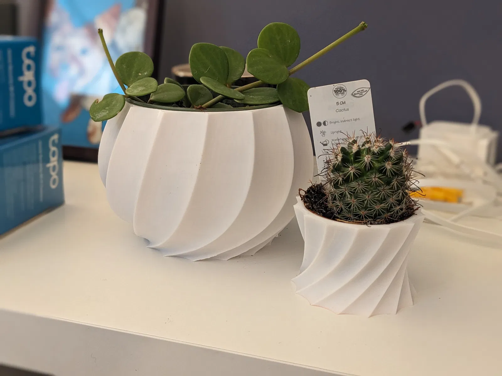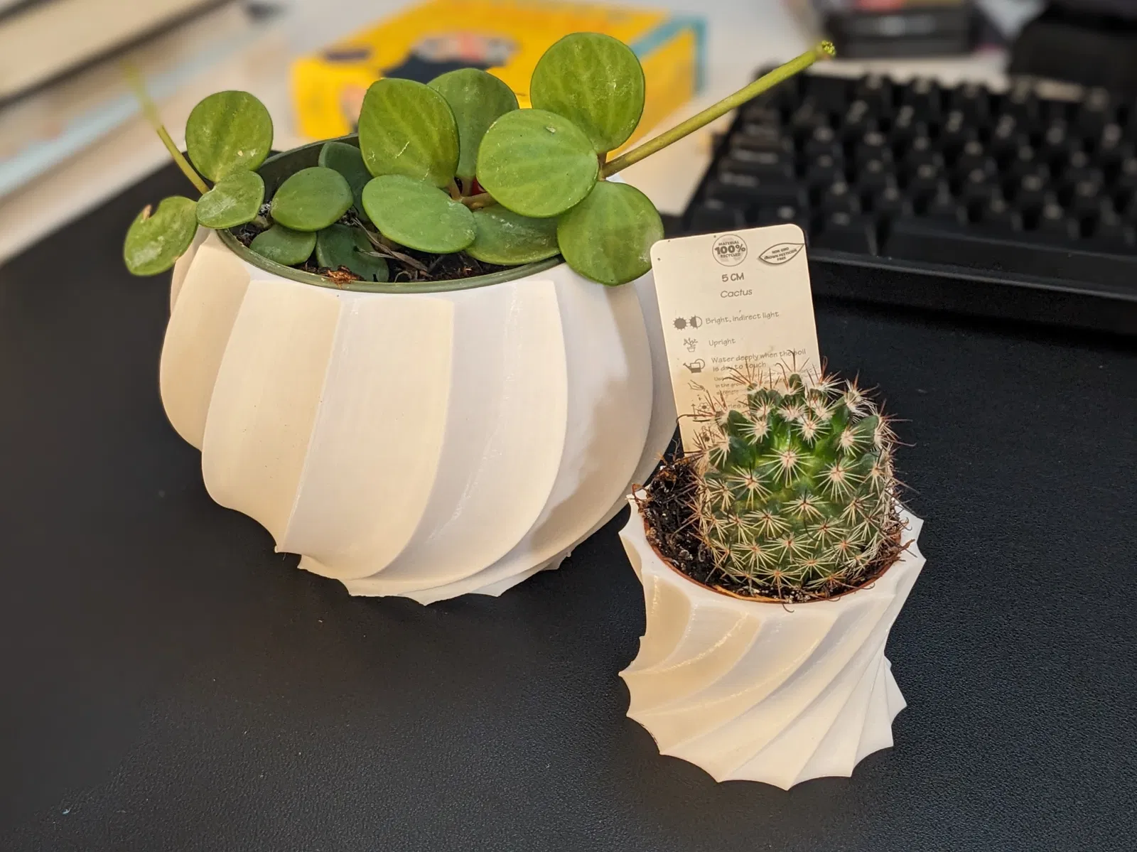 Hai chậu cây hình học xoắn ốc mà tui làm cho mấy cây để bàn ở văn phòng tui nè, mà chắc là cũng dễ chỉnh sửa cho vừa với cây của mấy bồ nếu mà cần ha.