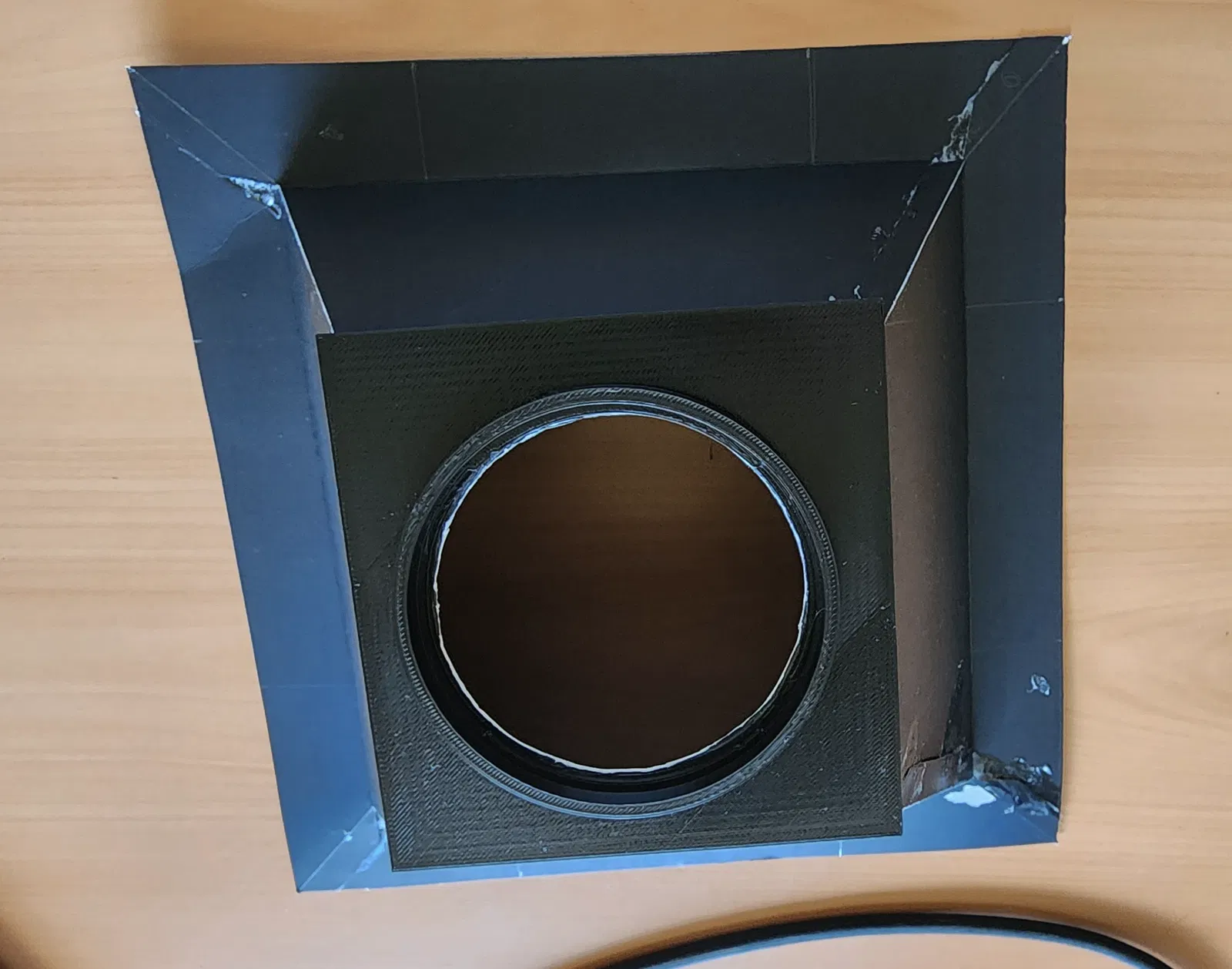 Adapter ống kính cho Sony 72mm (24-240mm) giúp chống chói và phản chiếu ánh sáng khi chụp ảnh qua cửa sổ. Dùng giấy carton để hút sáng tốt hơn vật liệu in 3D.