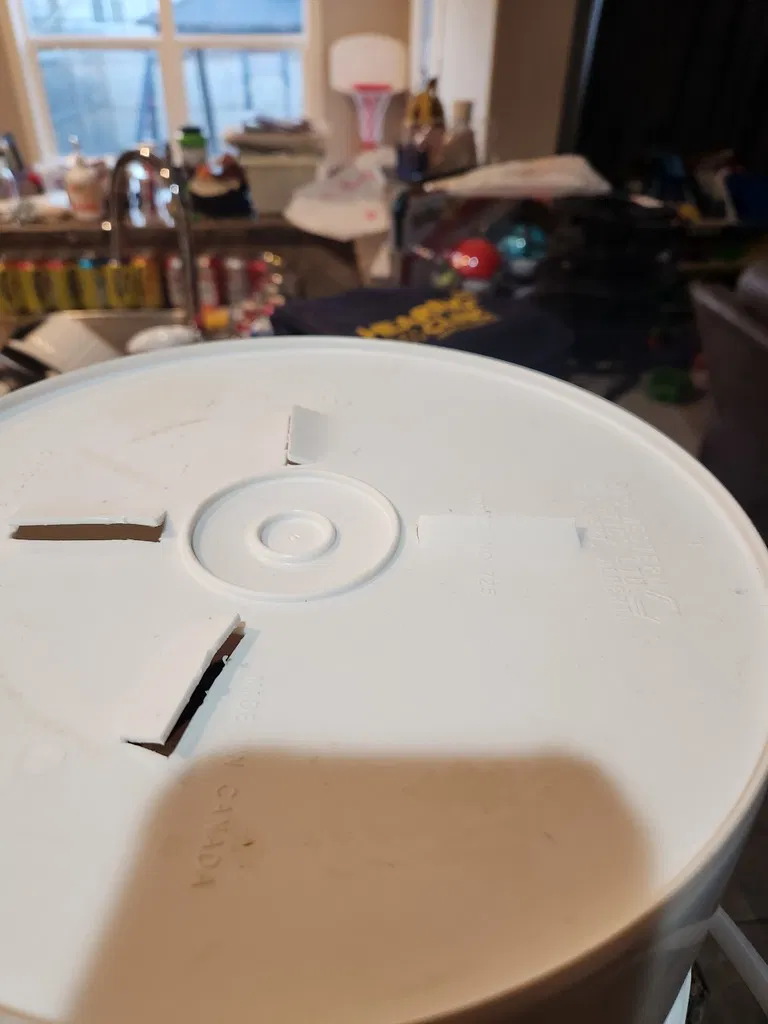 Cái này sử dụng một cái xô dễ kiếm (bất kỳ cửa hàng kim khí nào) và giá đỡ này để làm khô filament của bạn.