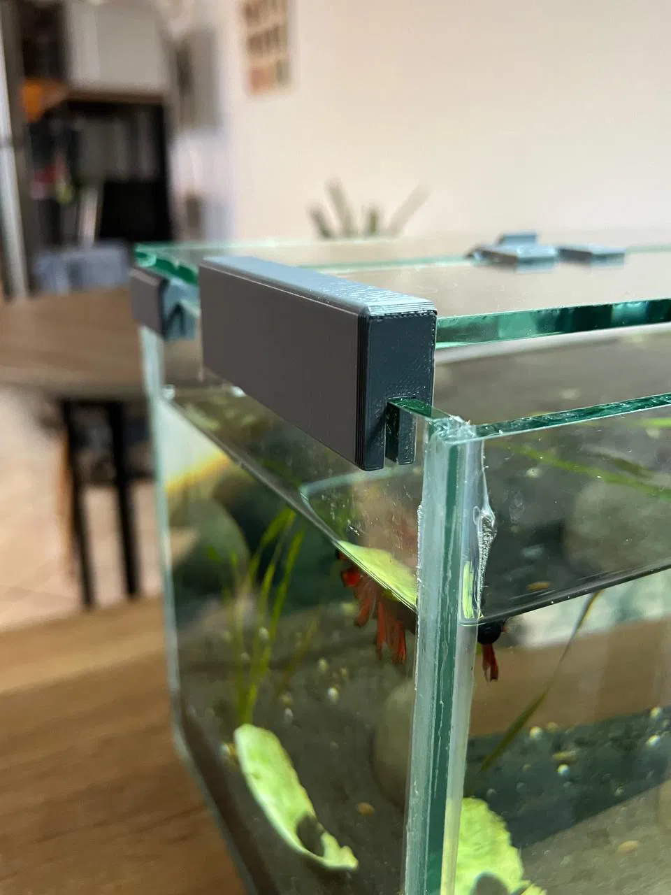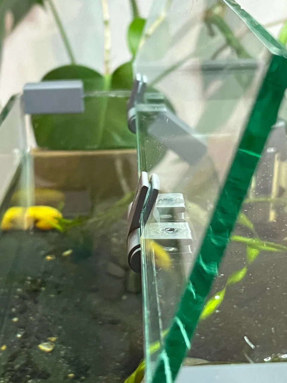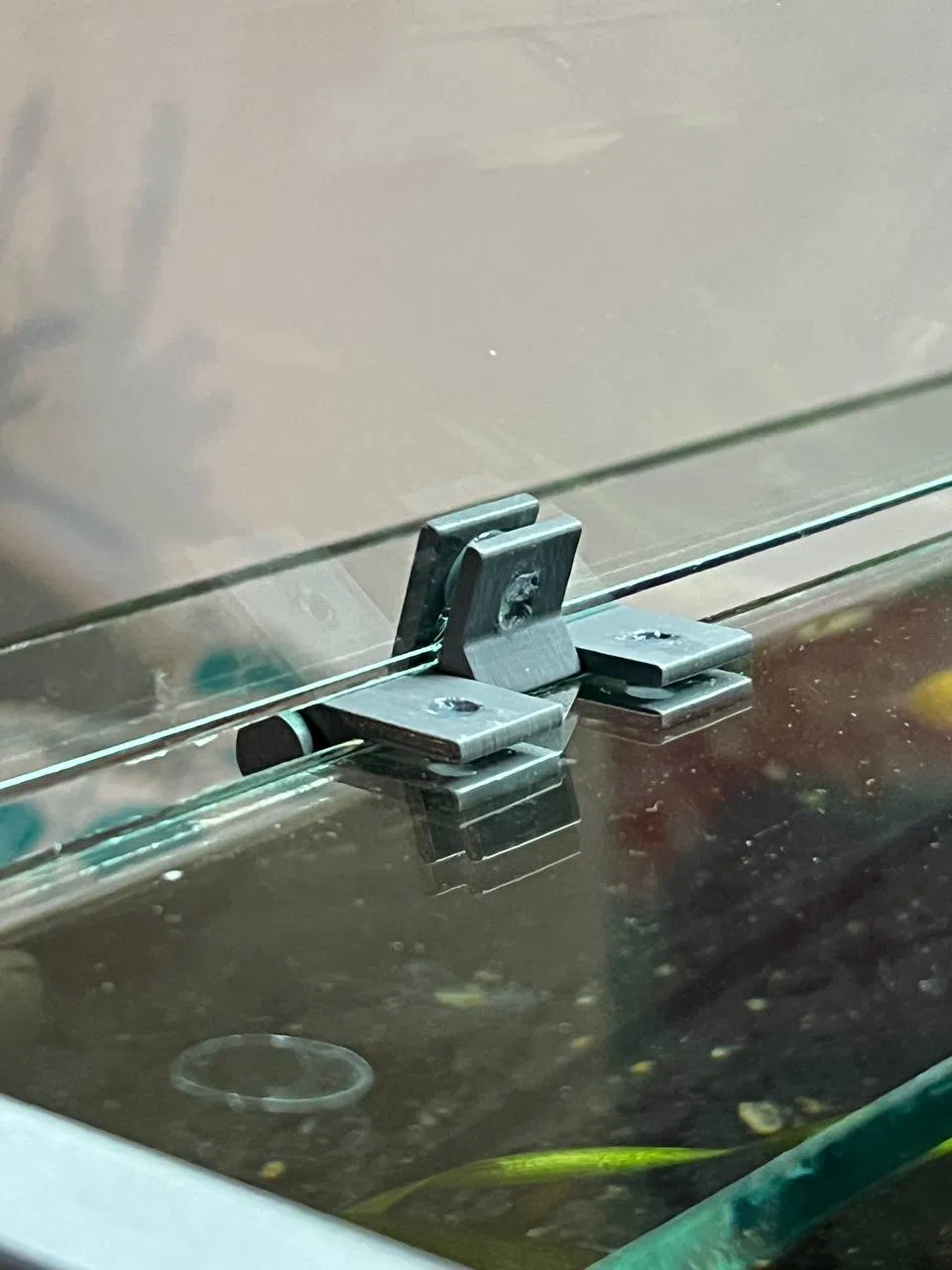 Chi tiết nắp hồ cá này giúp bạn cho cá ăn tiện lợi mà không cần nhấc nắp ra. Thiết kế cho kính 6mm, dễ vệ sinh. Kích thước 82mm, in bằng PLA, dán bằng keo silicone an toàn.