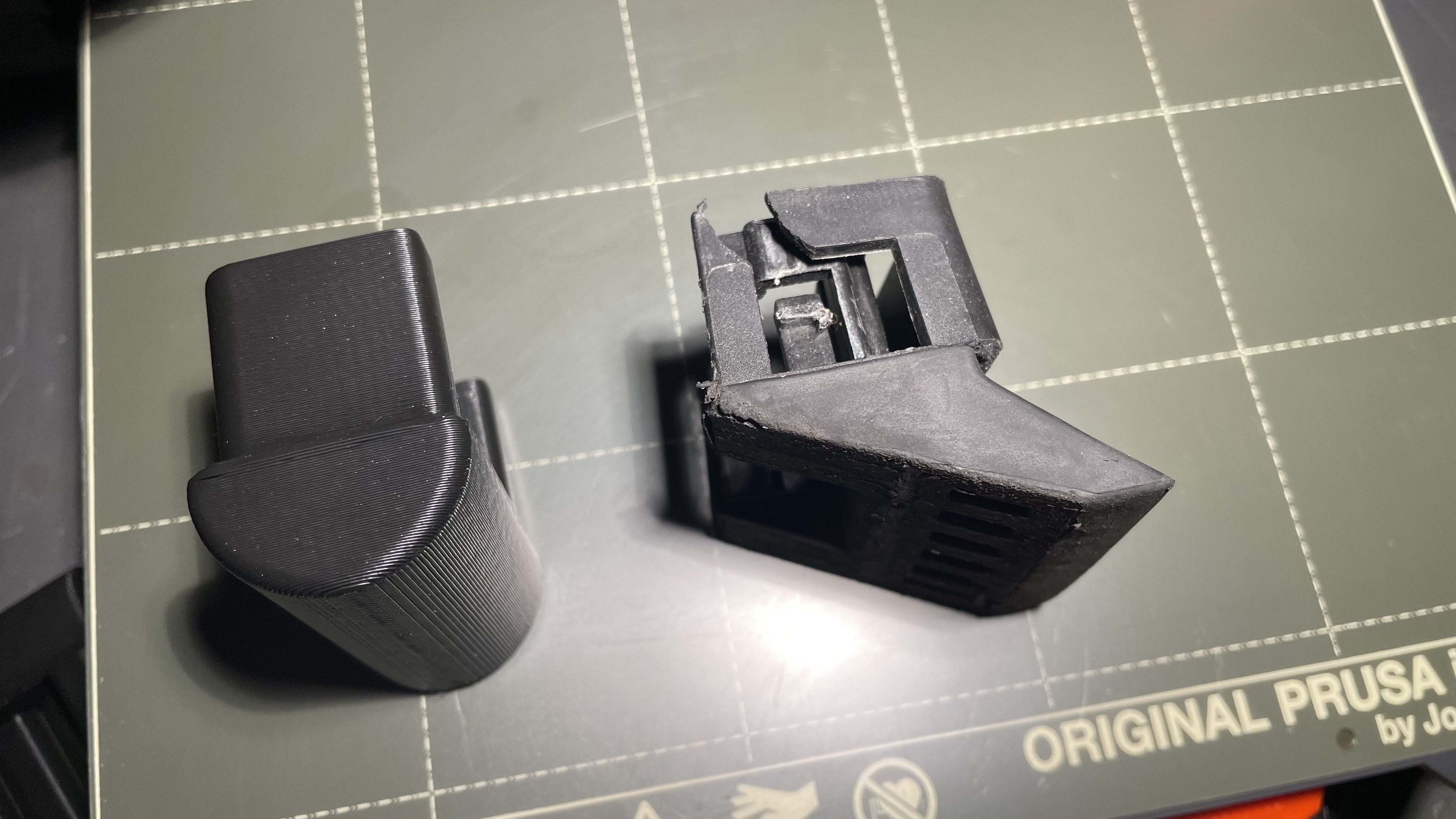Tui thiết kế cái chân đế này để thay cho cái bị gãy. Tui chọn làm cái đệm hình trụ thay vì cái phẳng/xiên mà đi kèm với trung tâm dự án. Tui không thèm làm lại cái tính năng bấm vào vì mấy cái bộ phận cuối cùng ép vào chân thép khá là vừa vặn.