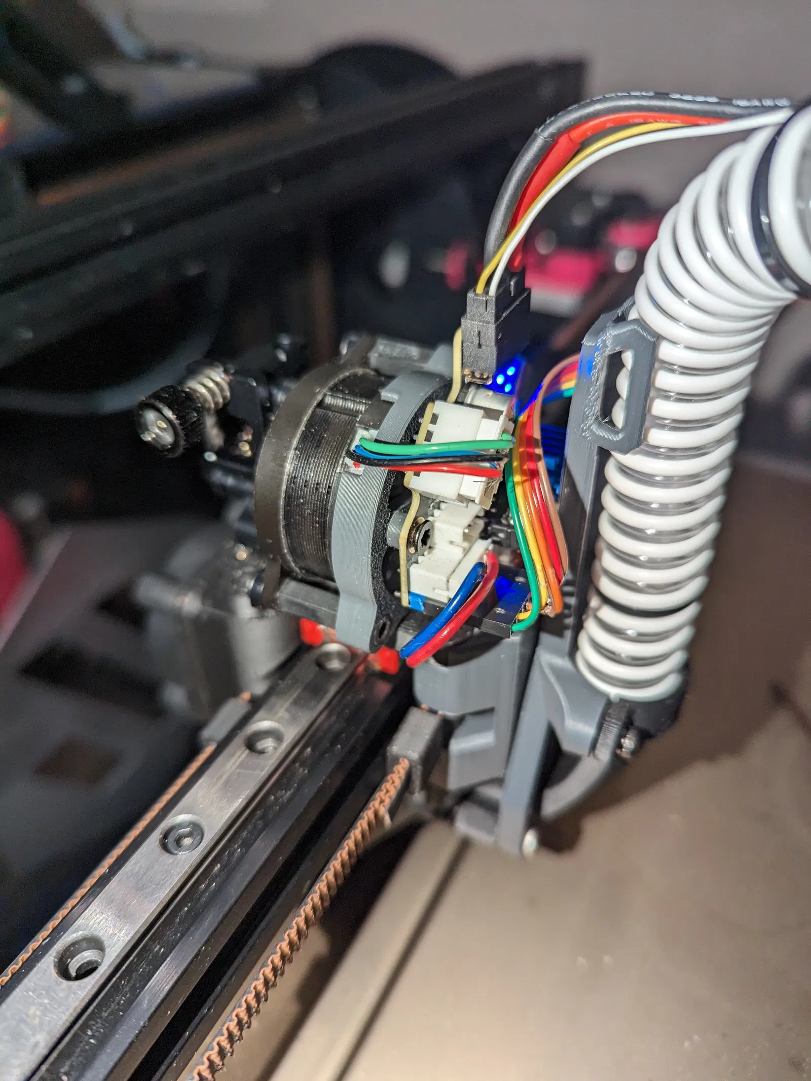 Giá đỡ cho sht36v2 gắn phía sau motor bước. Để đảm bảo bo mạch có thể đặt phía sau motor bước, tôi cũng đã sửa đổi một số bộ phận của cụm đầu in vzbot.