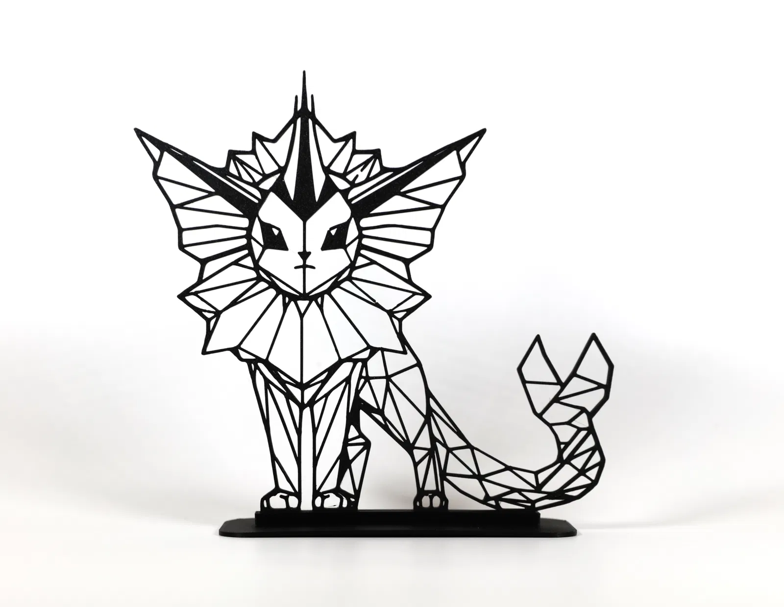 Mô hình 3D Vaporeon theo phong cách hình khối đa giác thấp, thể hiện vẻ đẹp thanh lịch và uyển chuyển của Pokémon thủy sinh. Một tác phẩm nghệ thuật trừu tượng, hiện đại, lý tưởng làm vật trang trí cho người hâm mộ Pokémon và những người yêu thích nghệ thuật đương đại. Có kèm giá đỡ.