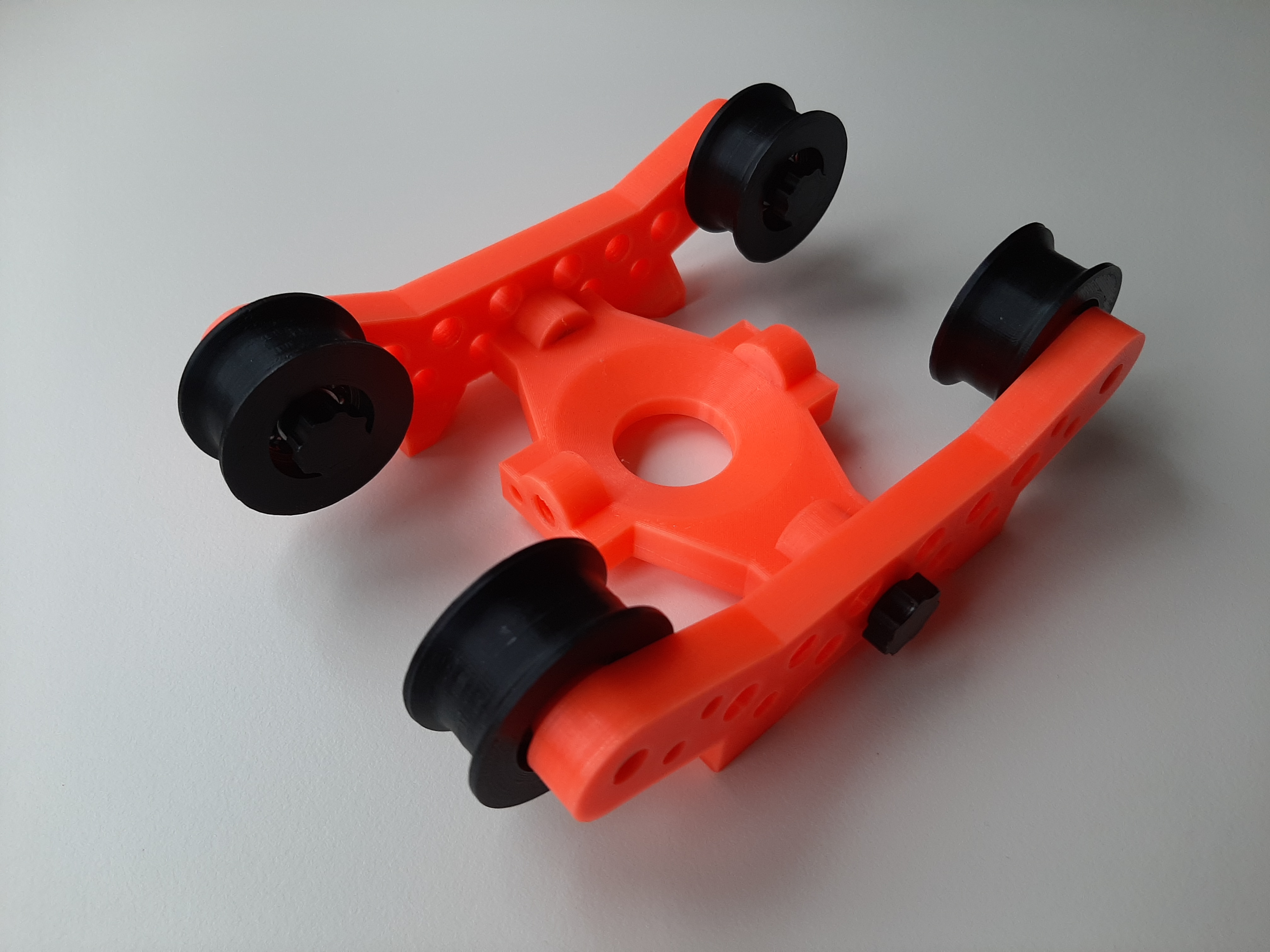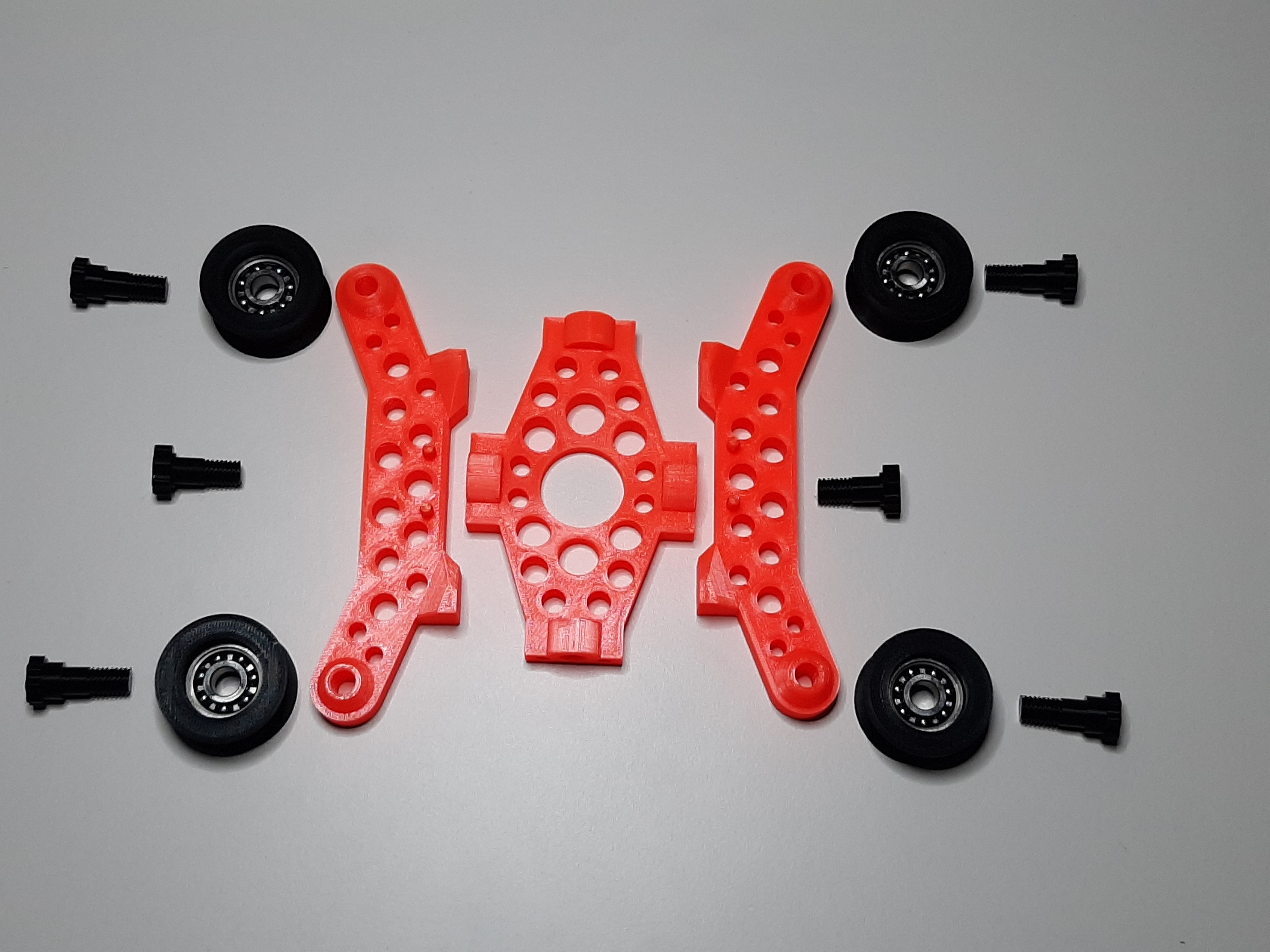 Các chốt được in thẳng đứng, các bộ phận khác được đặt phẳng, đối với các con lăn, đặt đường kính trong nhỏ hơn lên khay in, để không cần giá đỡ.