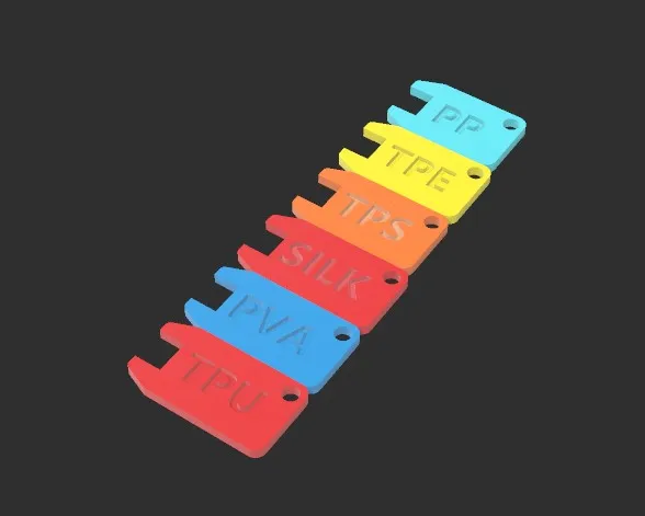 Bộ mẫu filament vật liệu lớn gồm 26 mẫu có thể được gắn vào khung i3 MK3S + hoặc treo trên chìa khóa. Chứa các vật liệu: