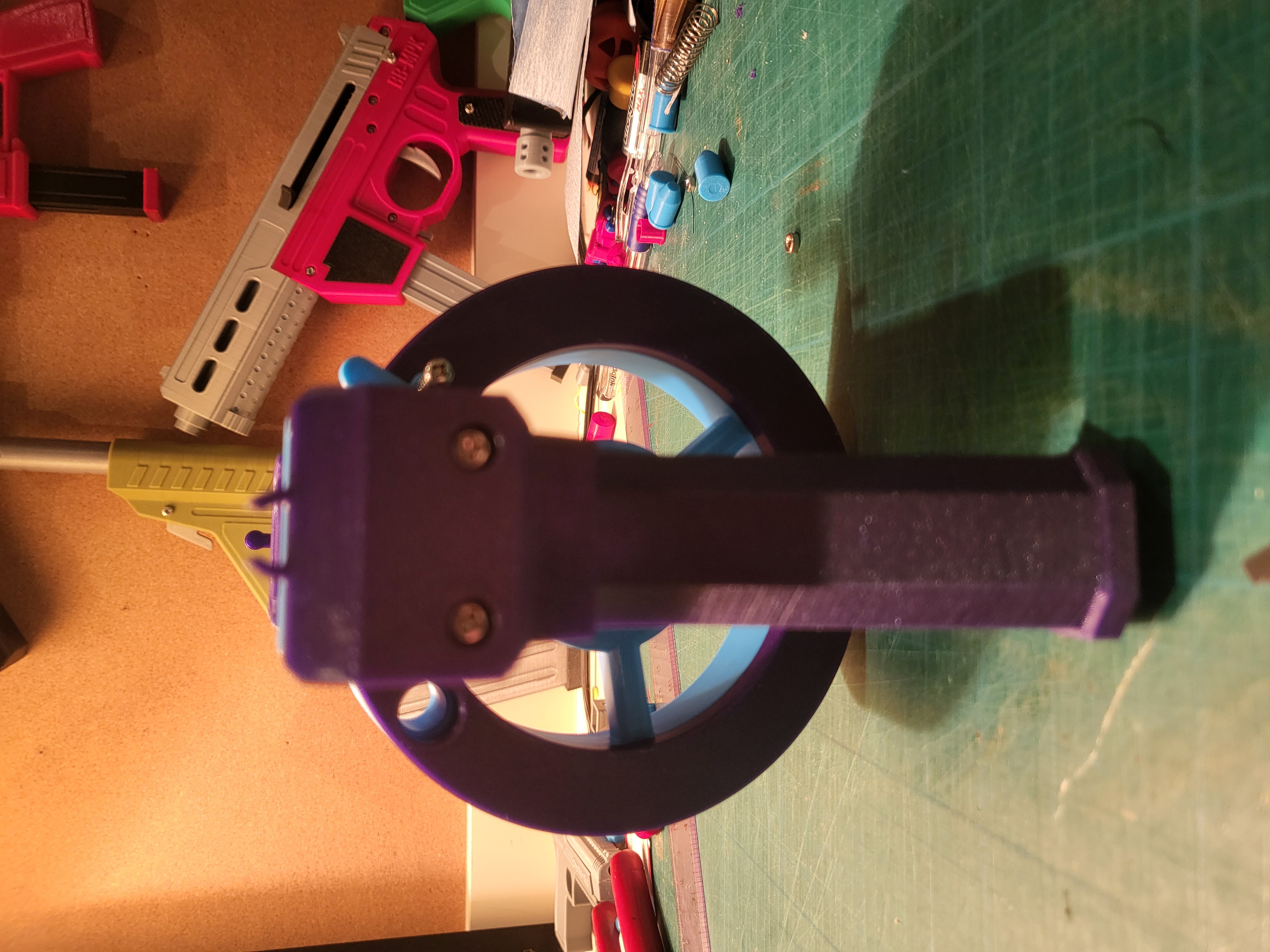 Cái "wheel gun" này là một khẩu súng đồ chơi có cơ chế bắn kiểu bolt action và băng đạn xoay 16 viên. Tui thấy nó là một dự án nhỏ ngầu và vui đó, dù lúc đầu tui có làm sai chút nên cái khung chính không được thân thiện với máy in cho lắm, nhưng mà bản V2 đang được phát triển đó nha!