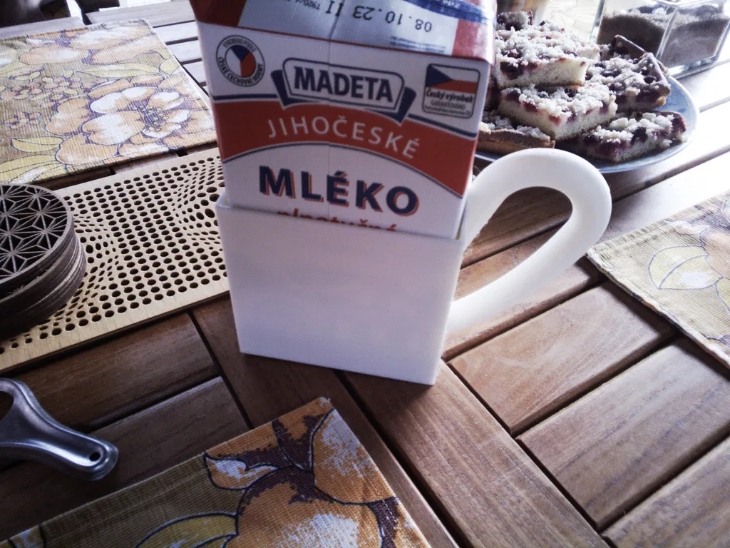 Cái giá đỡ hộp sữa này giúp bạn rót sữa dễ hơn, khỏi đổ tùm lum. In không cần hỗ trợ, phần tai trên thì mình tự chà nhám cho nó đẹp đó. Thích hợp cho nhà bếp, gia đình xài là tiện lắm luôn!