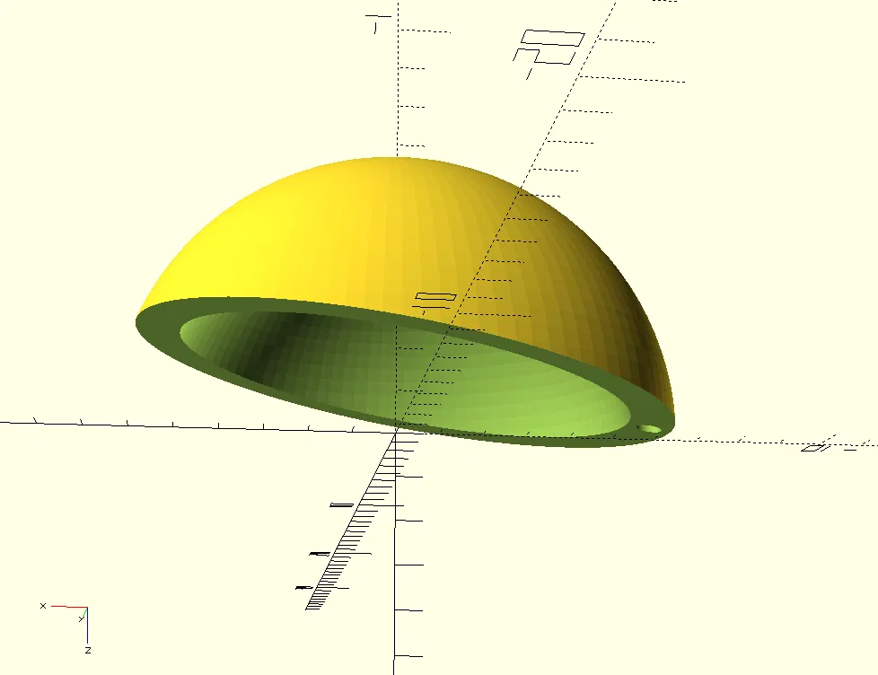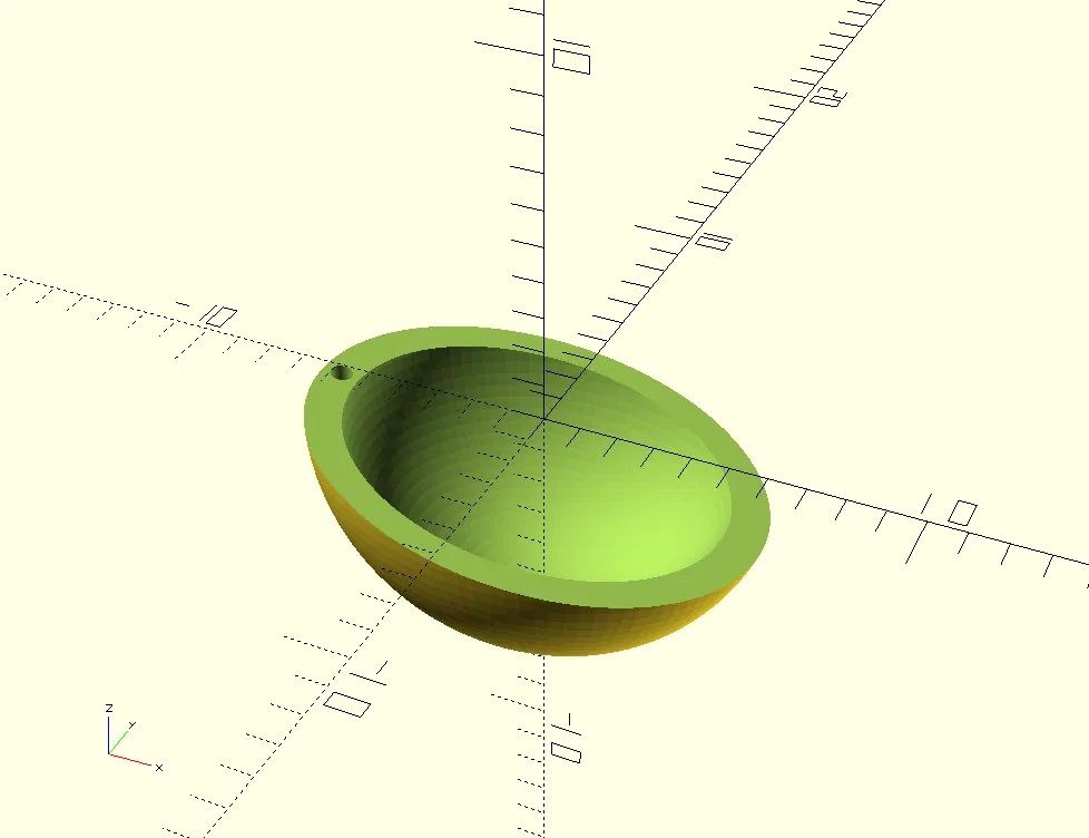 Trên file 'OpenSCAD', bạn có thể thấy các tham số mã có thể được tùy chỉnh để phù hợp với đầu búp bê của bạn. Tôi đã giả định một hình cầu elip rỗng và cắt bỏ một hình lập phương theo một góc. Bạn có thể thay đổi các tham số này để phù hợp hơn với búp bê của mình. Bạn có thể thay đổi hình dạng một cách tham số. Có thể có một số kích thước mà điều này bị lỗi, trong trường hợp đó hãy báo cáo cho tôi để tôi có thể sửa nó.