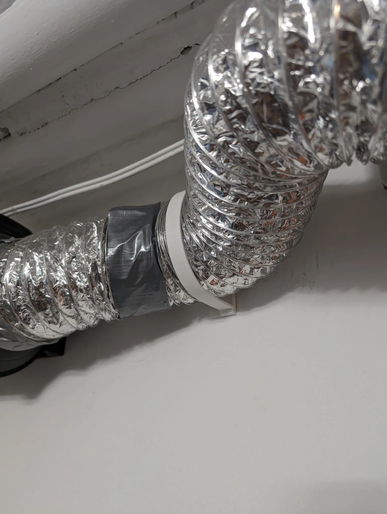 Giá đỡ dạng gài cho ống gió mềm bằng nhôm 4 inch, dùng để gắn lên tường bằng băng keo chuyên dụng. Thiết kế chắc chắn, phù hợp cho máy khắc laser.