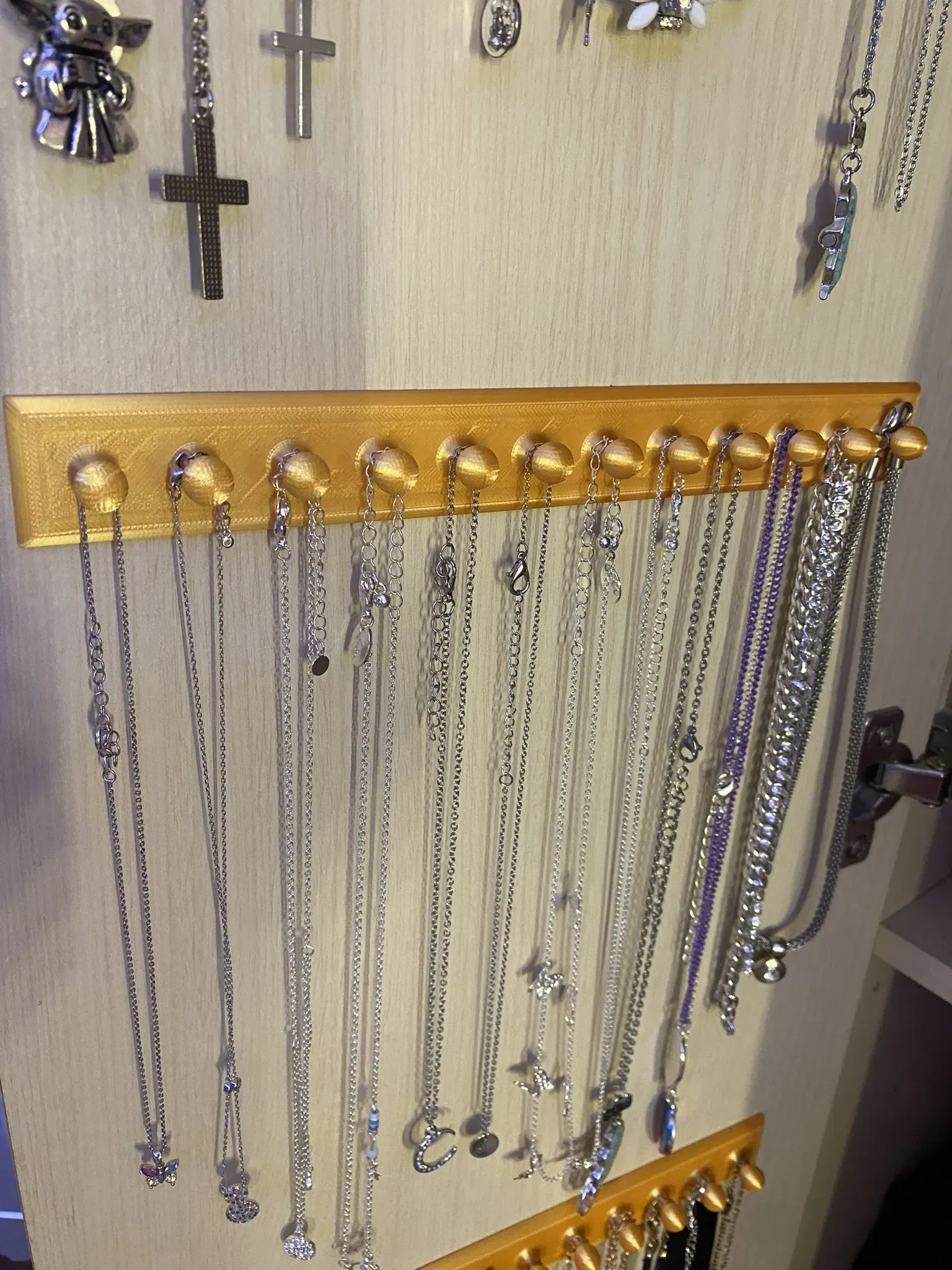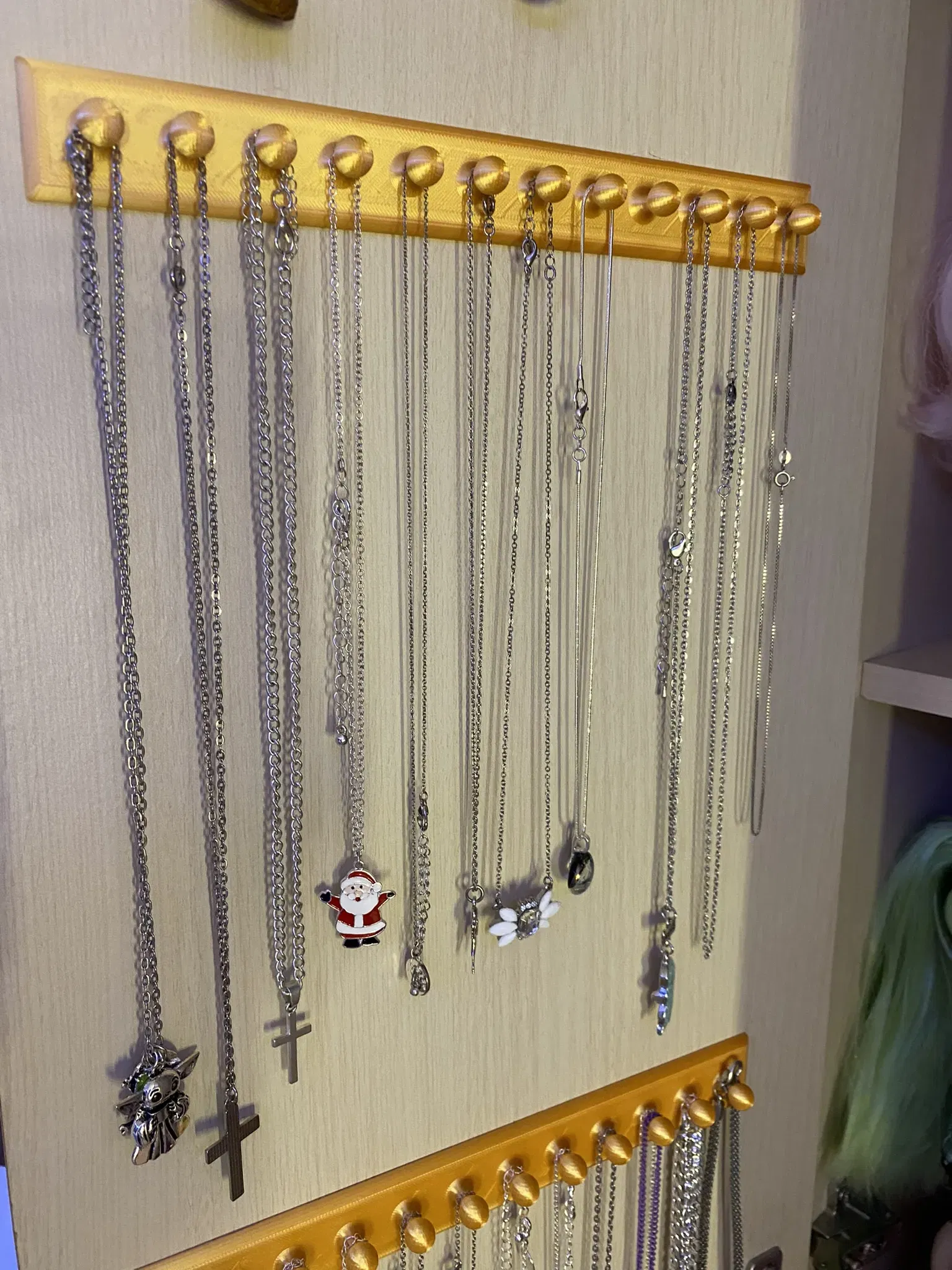 Với giá treo dây chuyền tiện dụng này, bạn có thể lưu trữ các món trang sức của mình một cách gọn gàng và ngăn nắp. Giá treo có chỗ cho tối đa 12 dây chuyền hoặc cả vòng tay, vì vậy không còn gì bị rối hoặc nằm lộn xộn nữa.